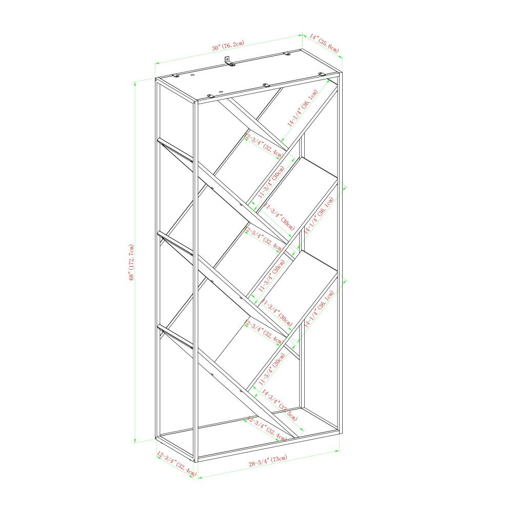 Channel your inner nerd genius or your trendy home decorator inspiration with this angled geometric bookshelf. Place your favorite comic books, cook books, or classic novels on the V-shaped shelves to show off your cool, eclectic vibe. The solid metal frame provides a sophisticated, industrial look that takes whatever collection you display to a mature, adult level. Whether you're adding a spunky touch by stacking towels or work supplies on the slanted shelves, the mixed-material design provides a modern touch to any room. Your personalized home office, living room, or hallway will be transformed with this eccentric bookshelf.
