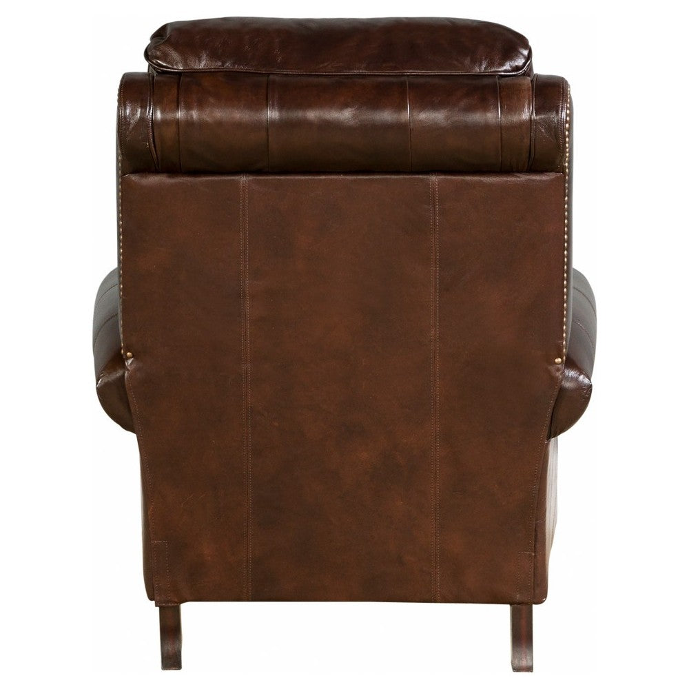 The classic pub back and brass nail head treatment of the Churchill is enriched with luxurious comfort through personalized adjustable upper and lower back pillows.