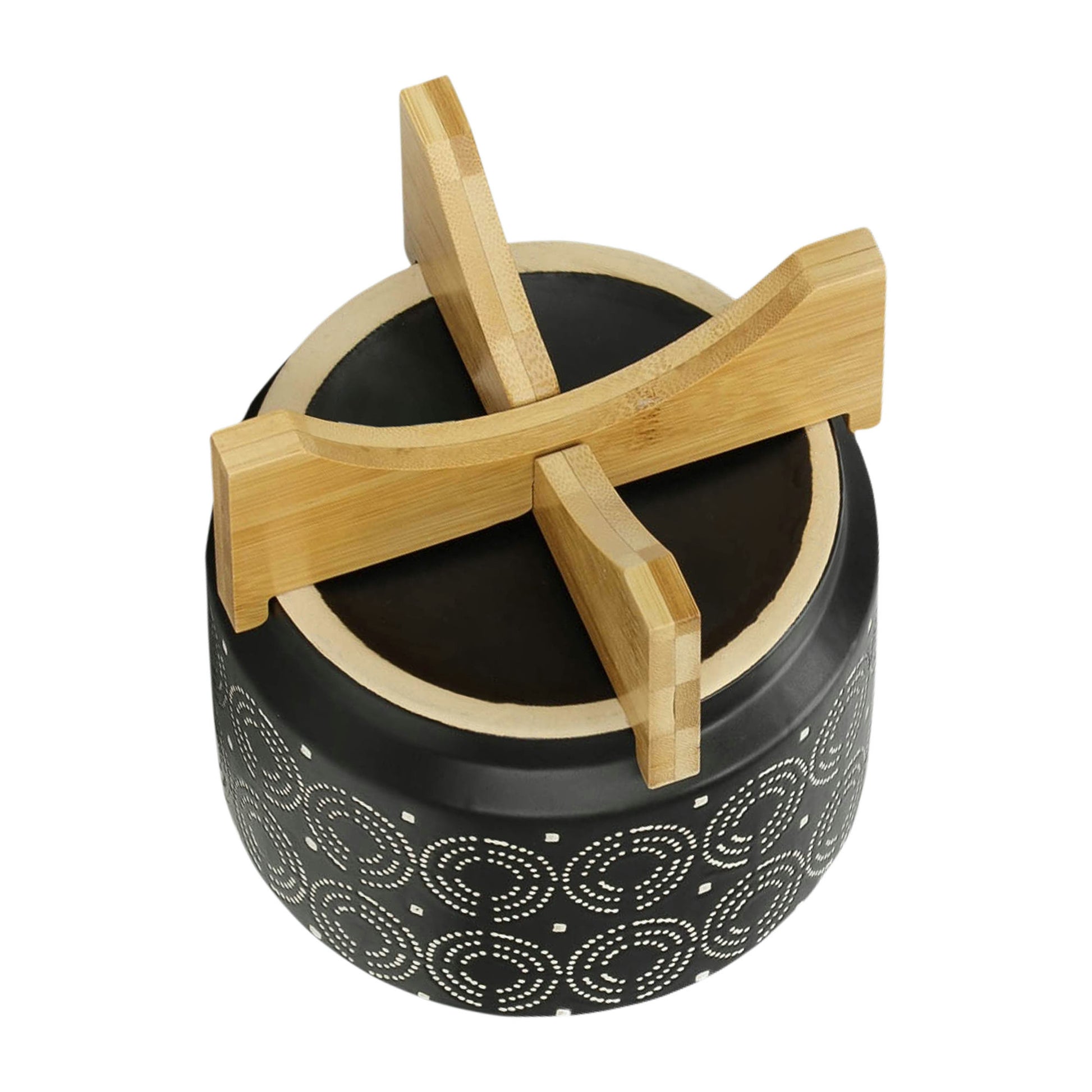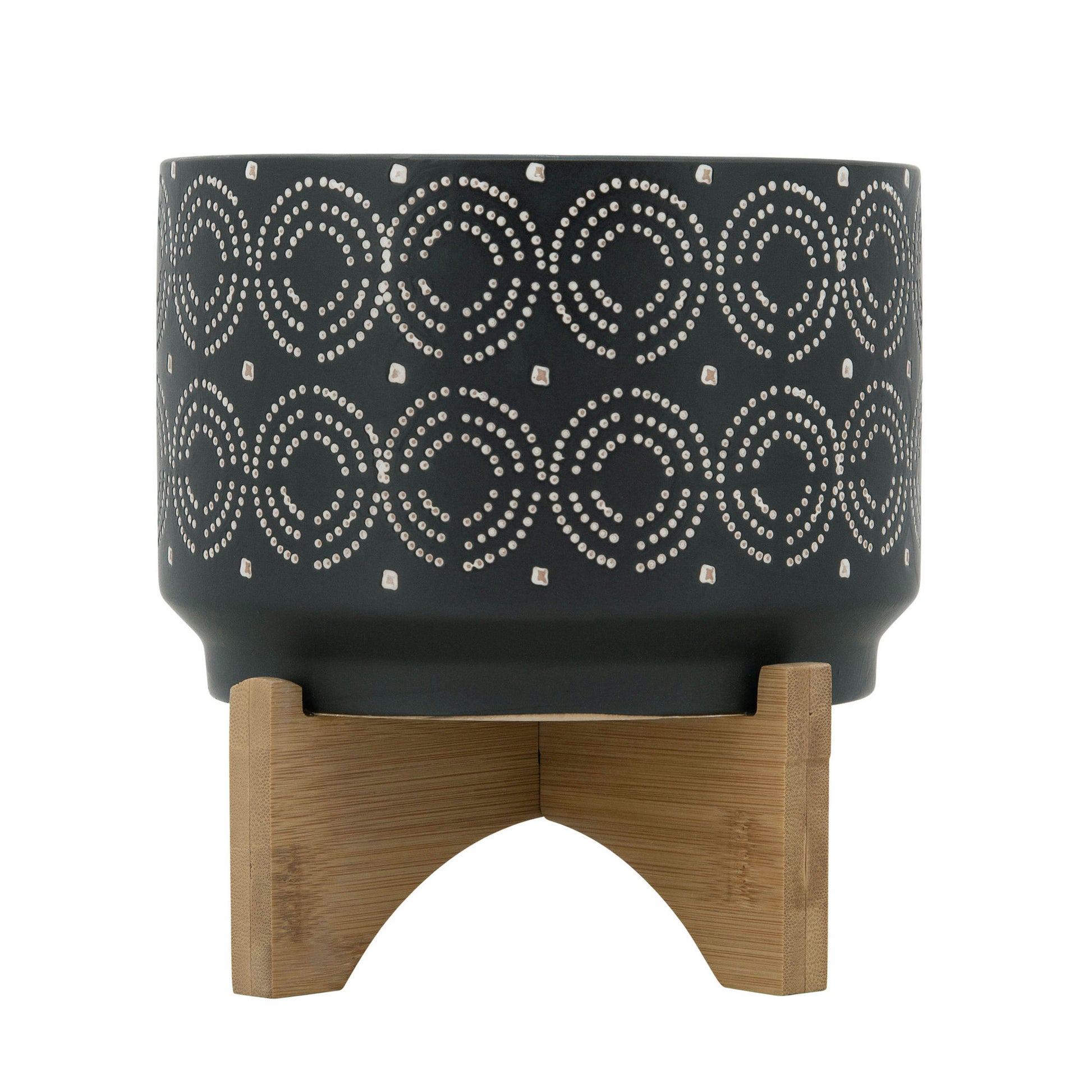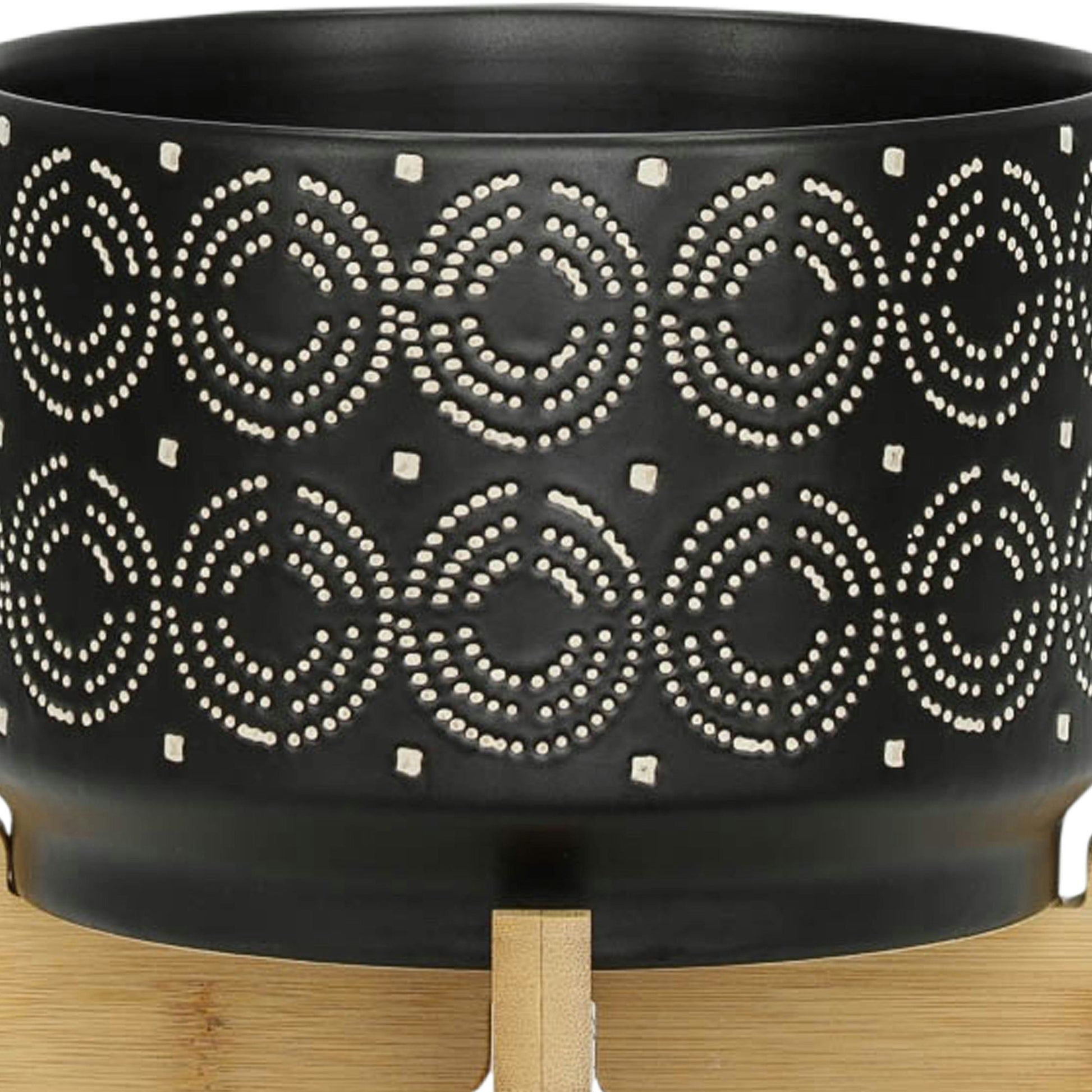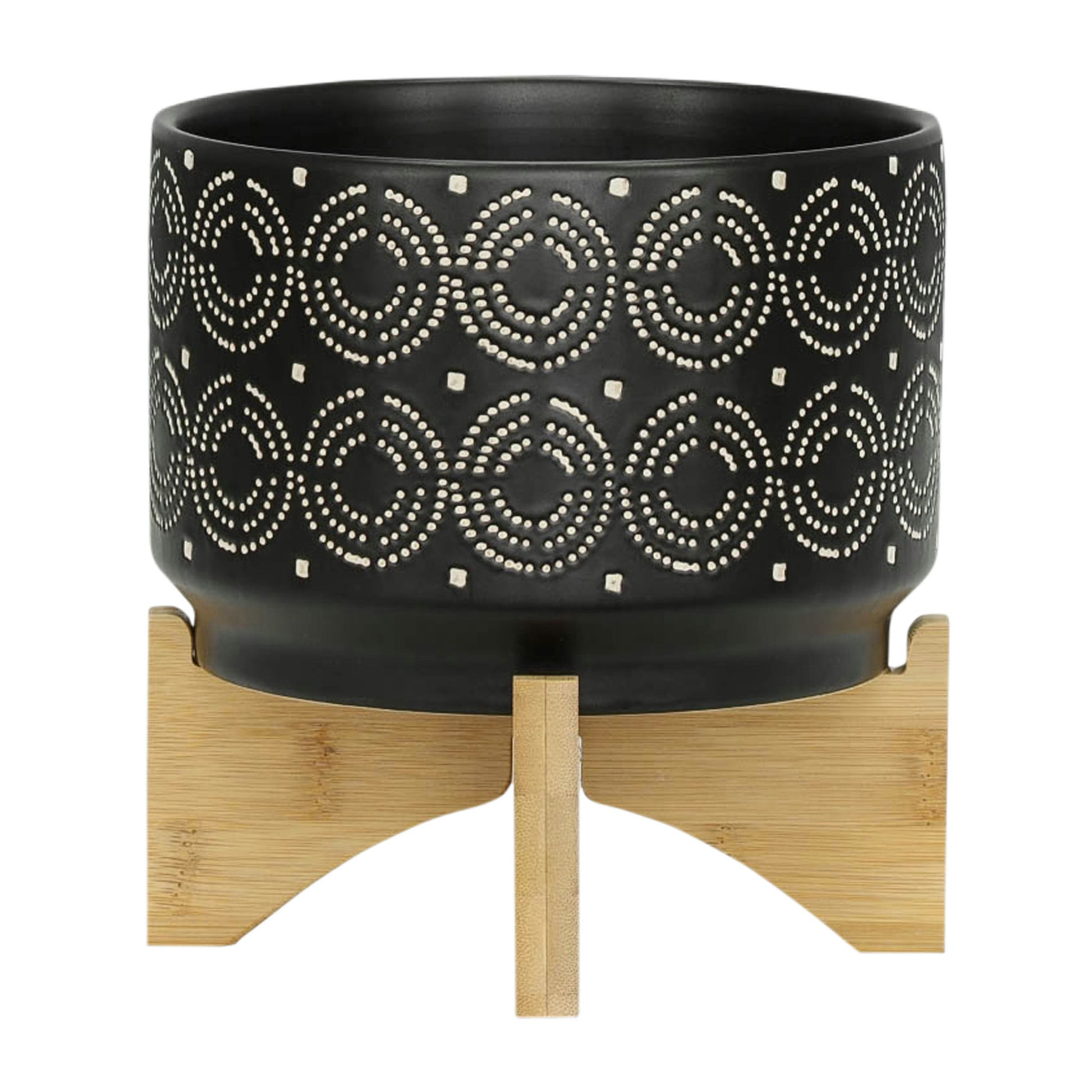 7" Swirl Planter On Stand, Black. Place This Black Matte, Swirl Design, Ceramic Planter In Any Space To Enhance The Room With A Peaceful Environment. This Ceramic Planter Has An Elegant Stylish Matte Gray As The Base And Crème Swirl Design. It Sits Atop Of A Wooden Stand.Sagebrook Home has been formed from a love of design, a commitment to service and a dedication to quality. They create and import fashion forward items in the most popular design styles. Backed with years of experience in the textile field, They are now providing a complete Home decor story. the combination of wall decor, furniture, lighting and Home accessories are all coordinated with textiles to provide a complete Home look. Sagebrook Home is committed to providing the best Home decor and accent pieces at value prices.