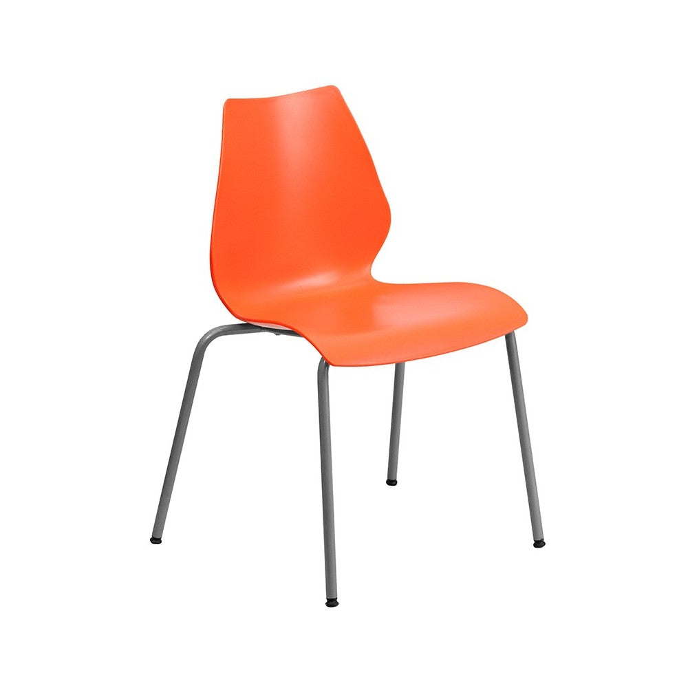 770 lb. Capacity Orange Stack Chair with Lumbar Support and Silver Frame