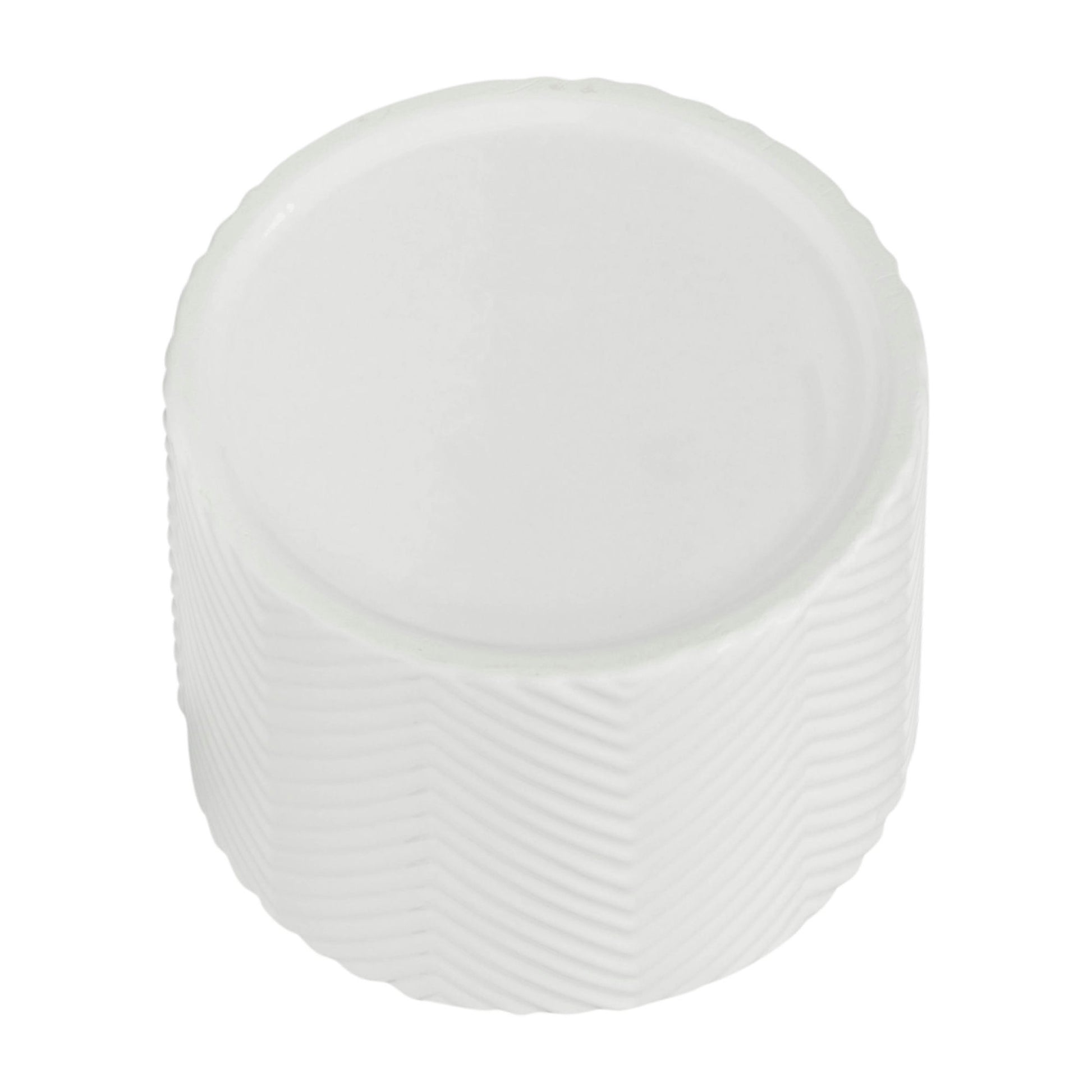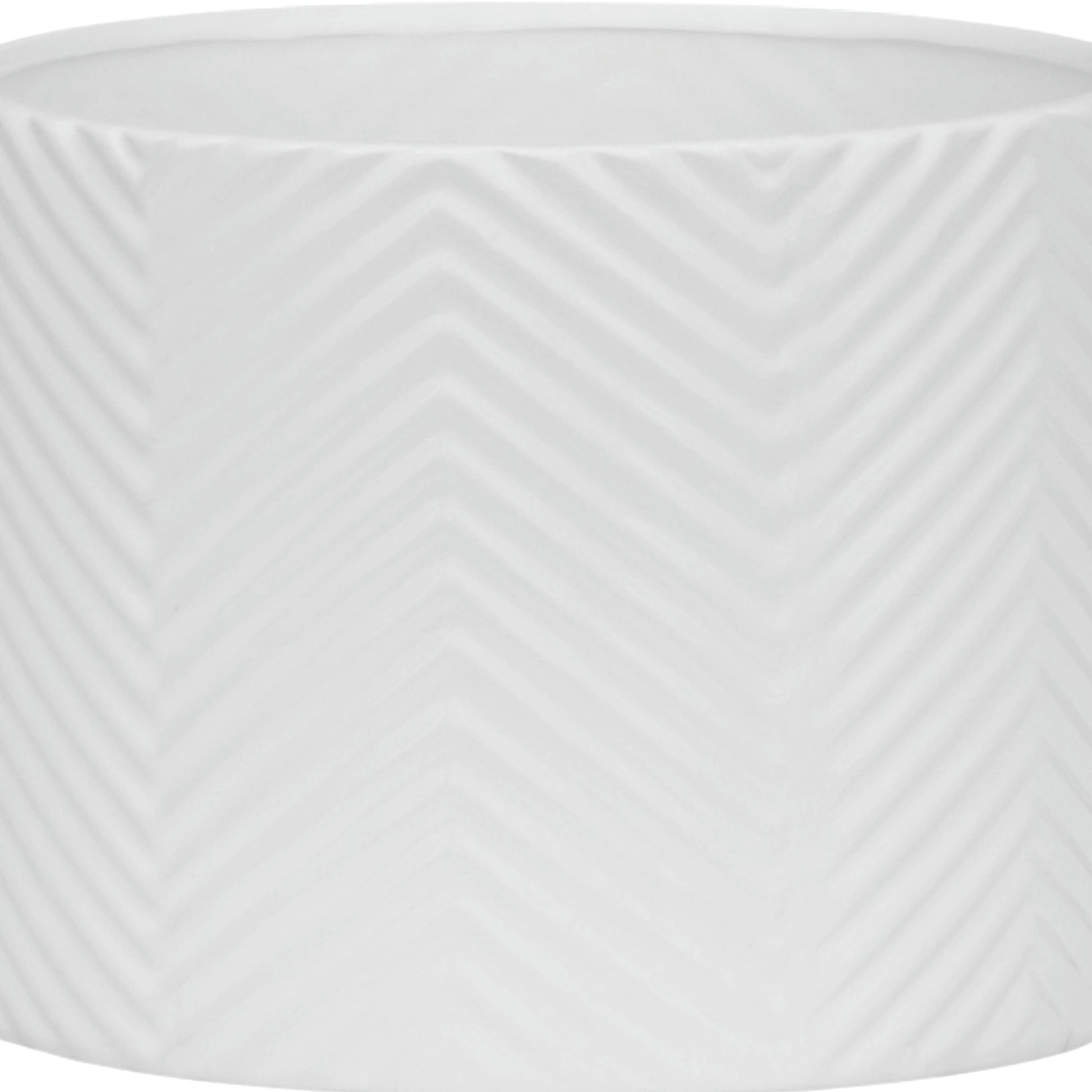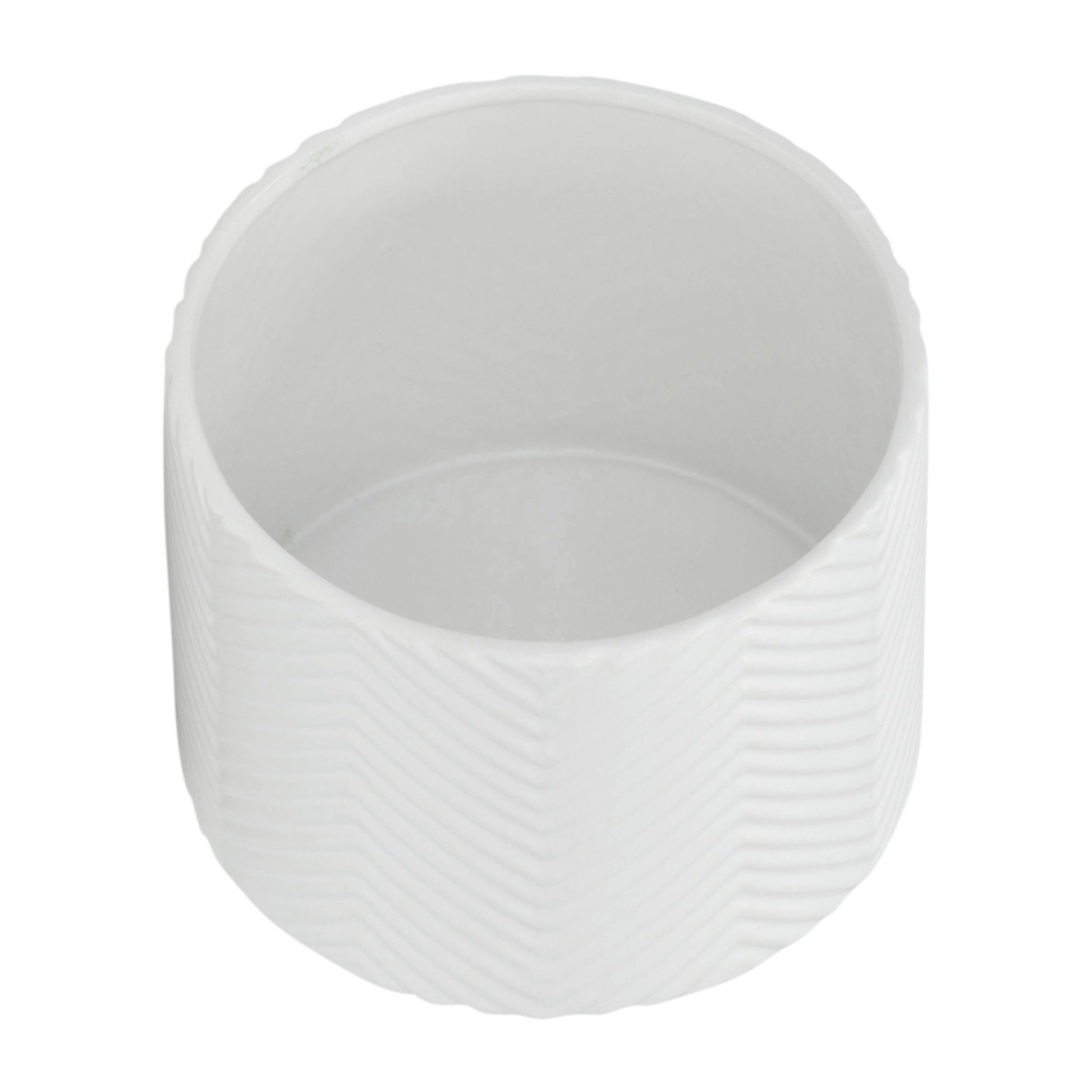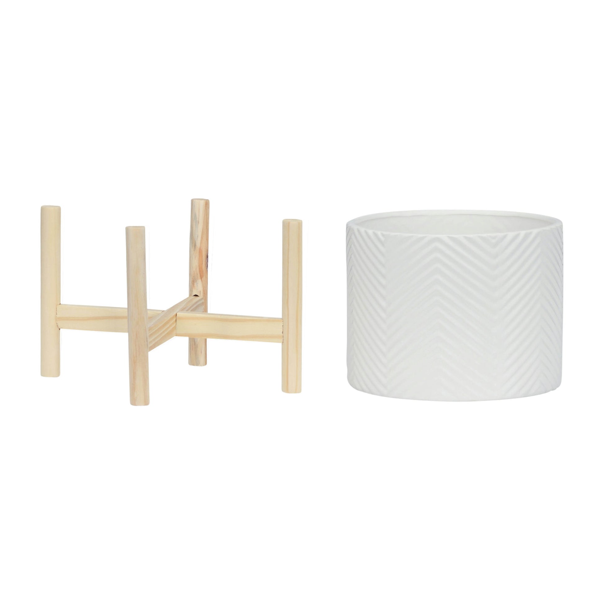 8" Ceramic Chevron Planter W/ Wood Stand, White
