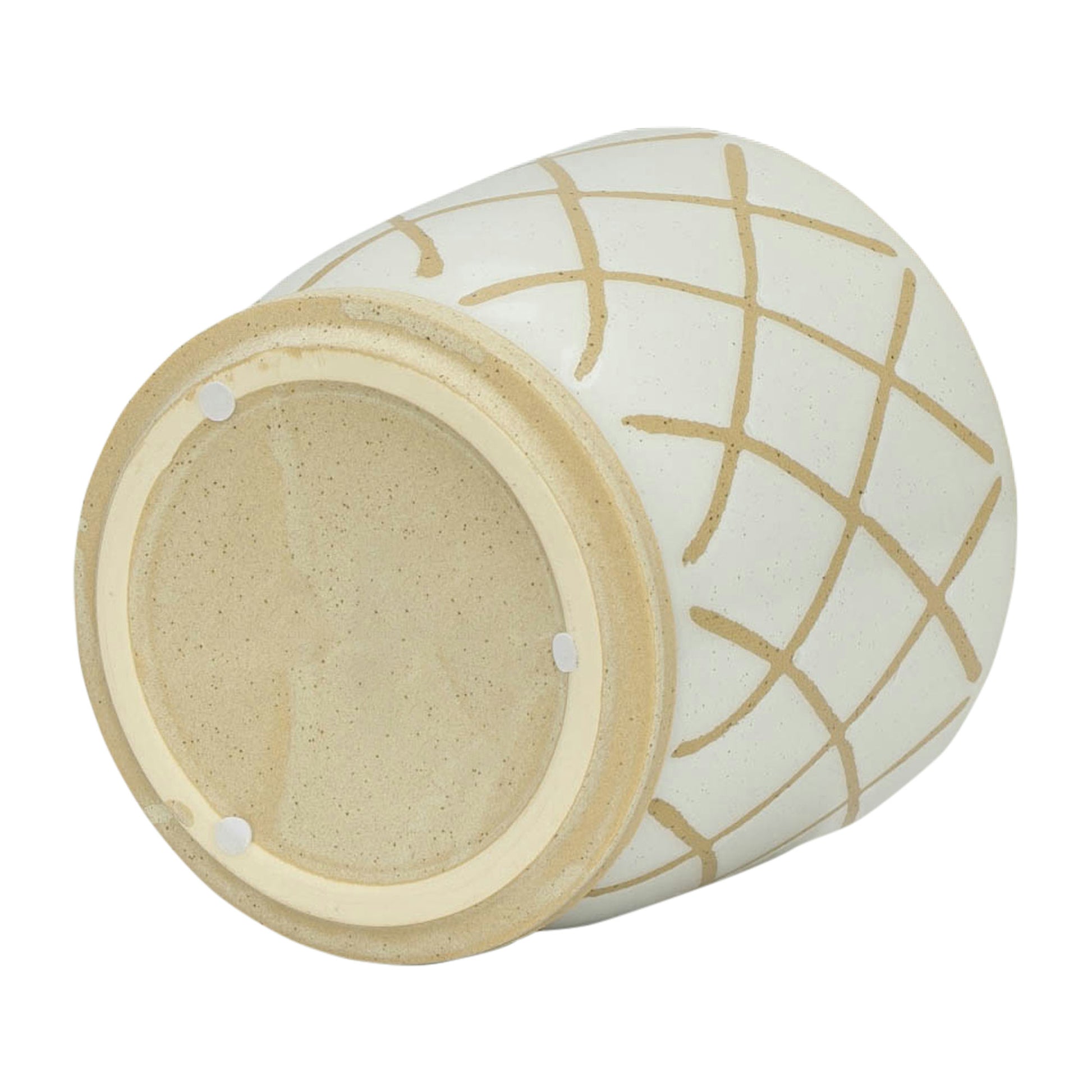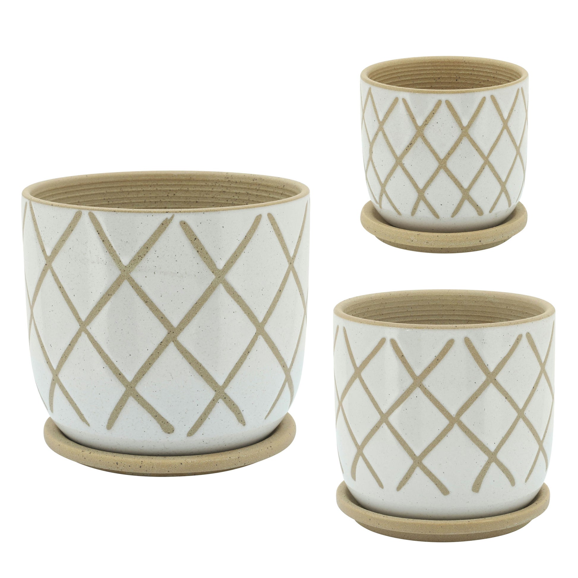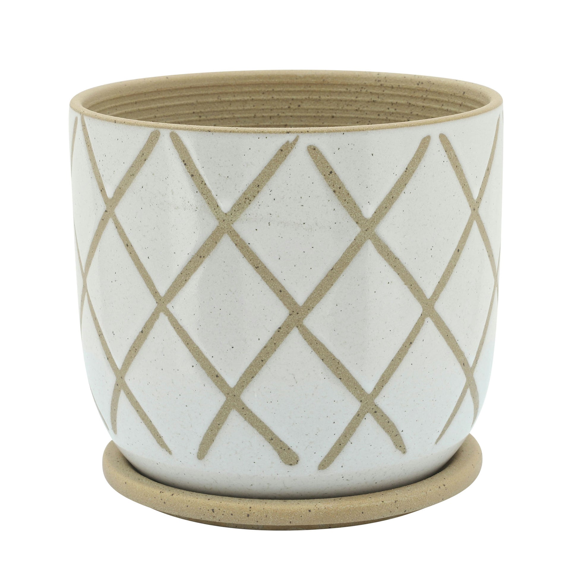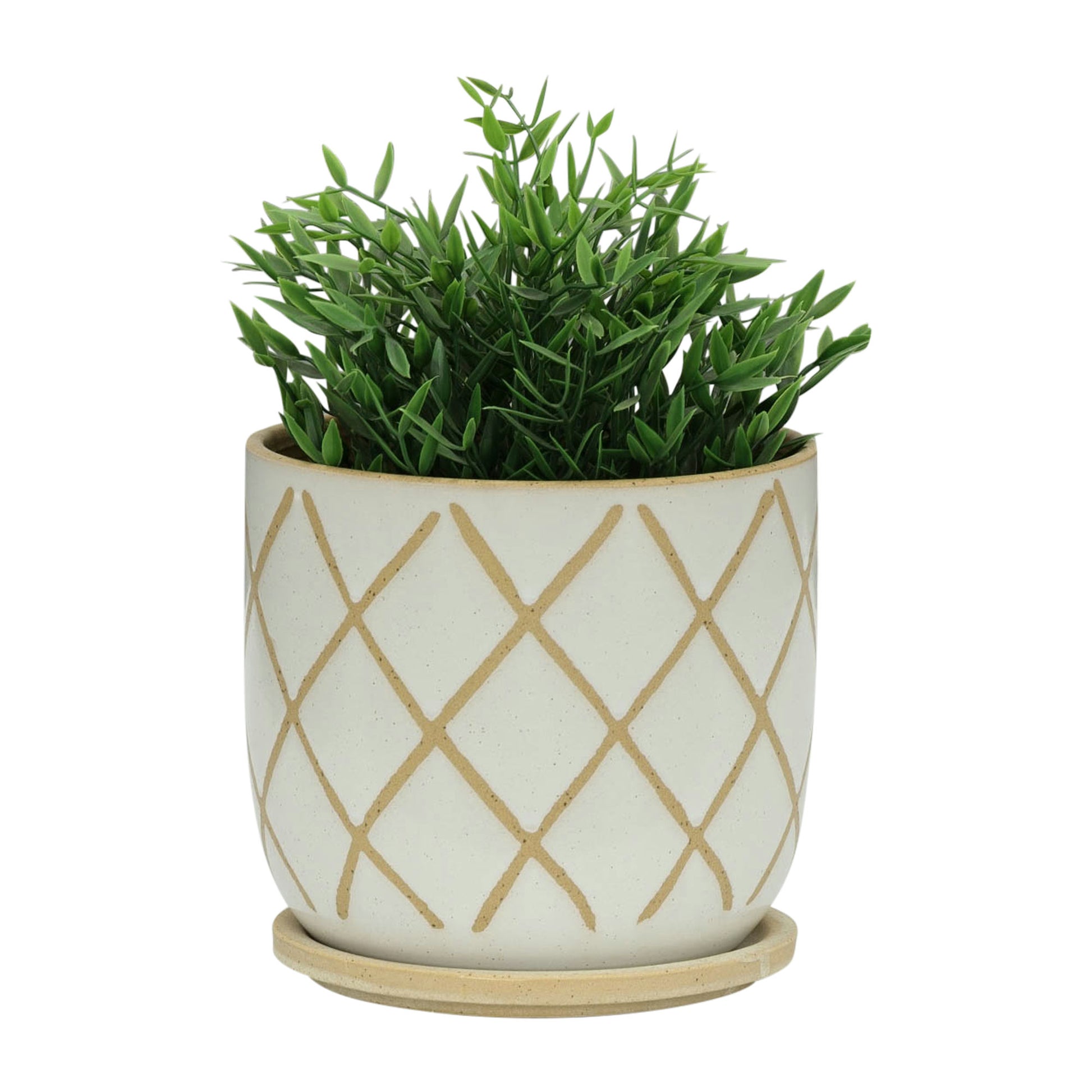 Astound your visitors with your sense of abstract style in home decor. This ceramic planters features a modern inspired design, using geometric shapes and lines to add a fun touch to any room. Perfect as an inside planter, with a saucer to avoid any spills on your floor, carpet or furniture.