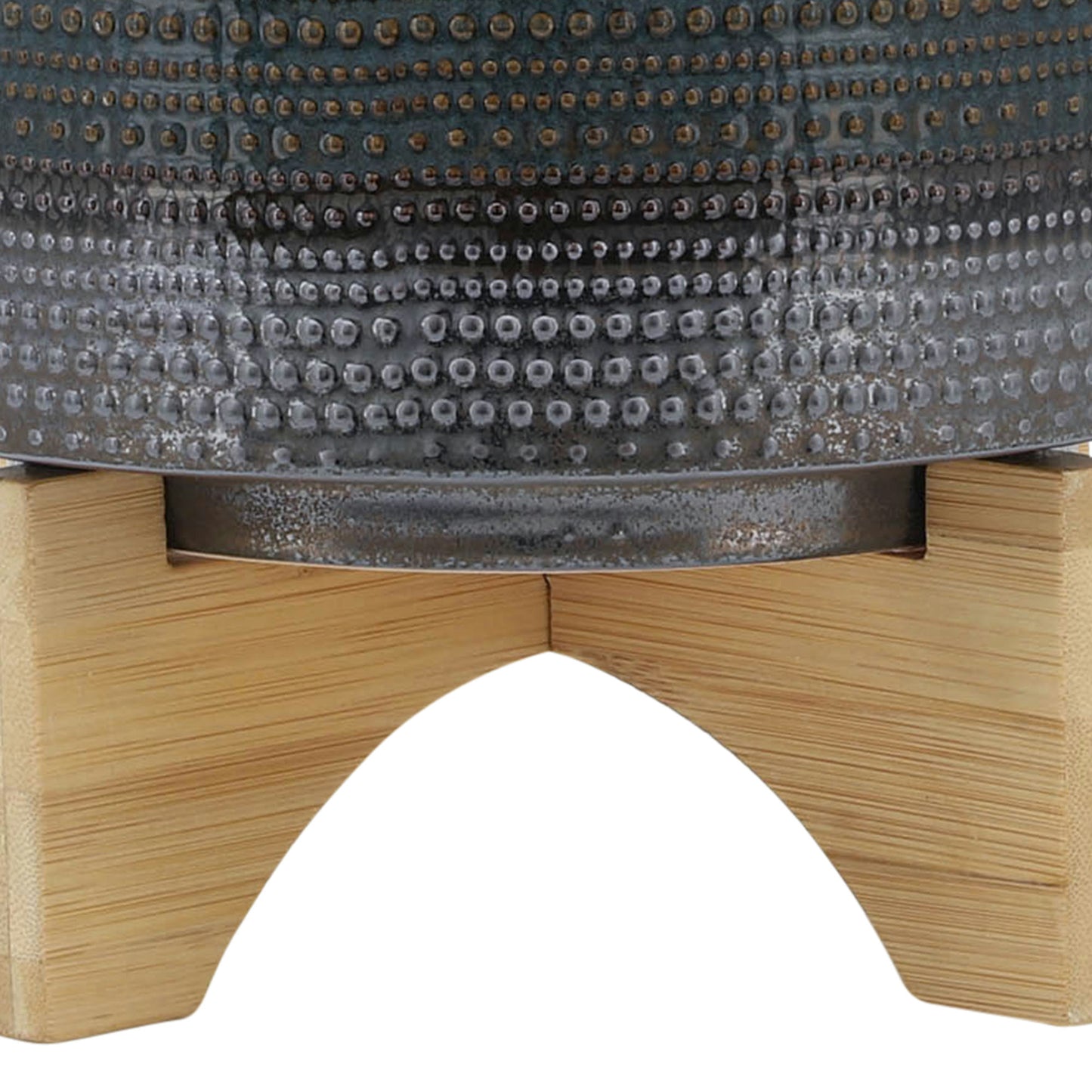 8" Dotted Planter W/ Wood Stand, Green