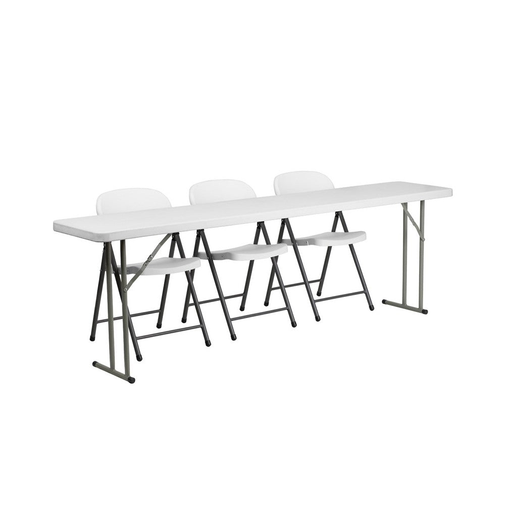 8-Foot Plastic Folding Training Table Set with 3 White Plastic Folding Chairs
