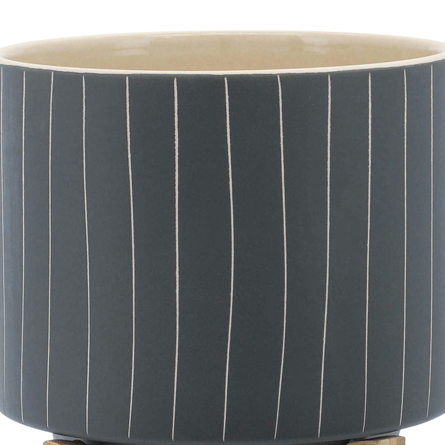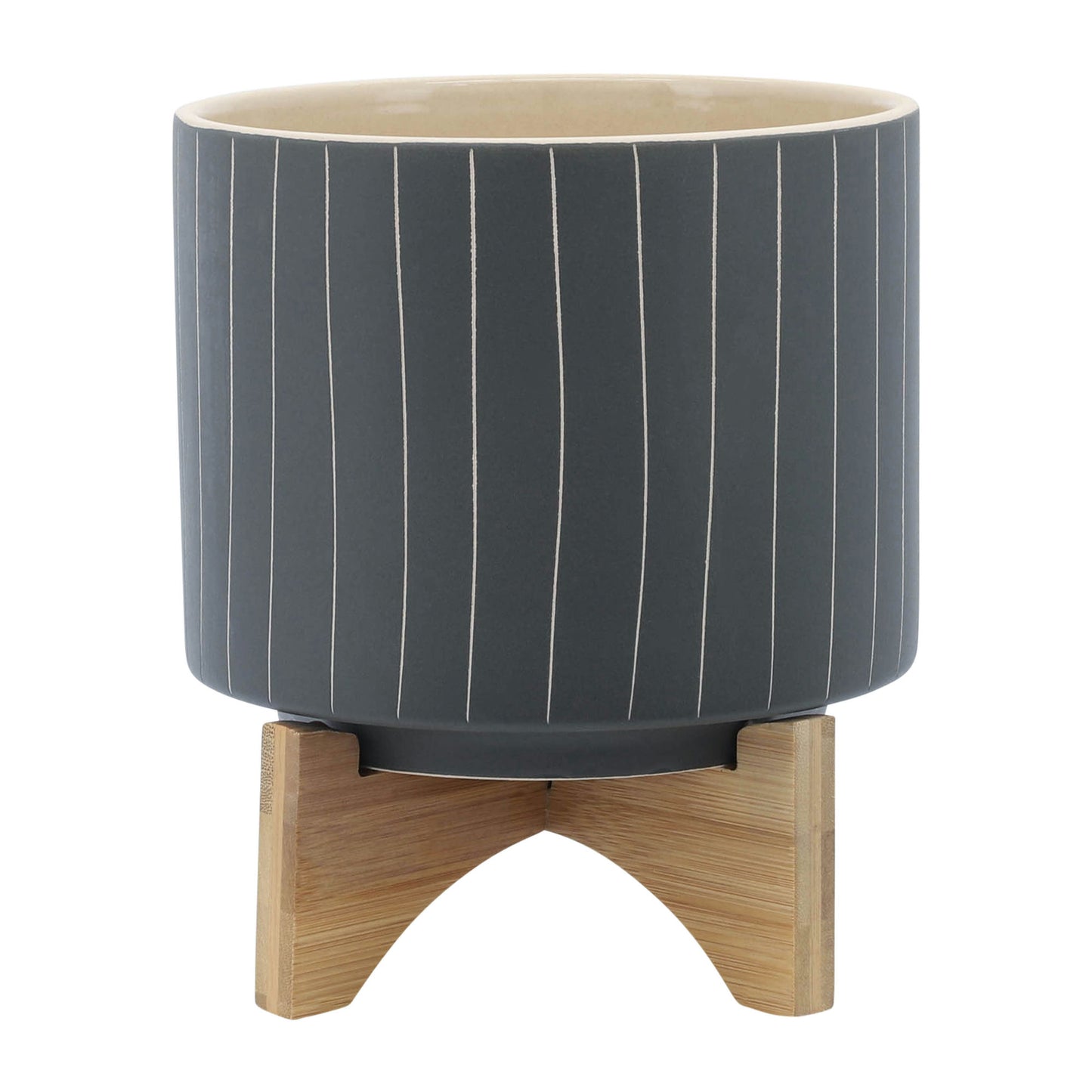 Bring home a touch of elegance and style with this stunning striped planter. Featuring a wooden stand to give your plant height and a grand showcasing! In a beautiful grey color to add an earthy touch of colors to your interior decor!Sagebrook Home has been formed from a love of design, a commitment to service and a dedication to quality. They create and import fashion forward items in the most popular design styles. Backed with years of experience in the textile field, They are now providing a complete Home decor story. the combination of wall decor, furniture, lighting and Home accessories are all coordinated with textiles to provide a complete Home look. Sagebrook Home is committed to providing the best Home decor and accent pieces at value prices.