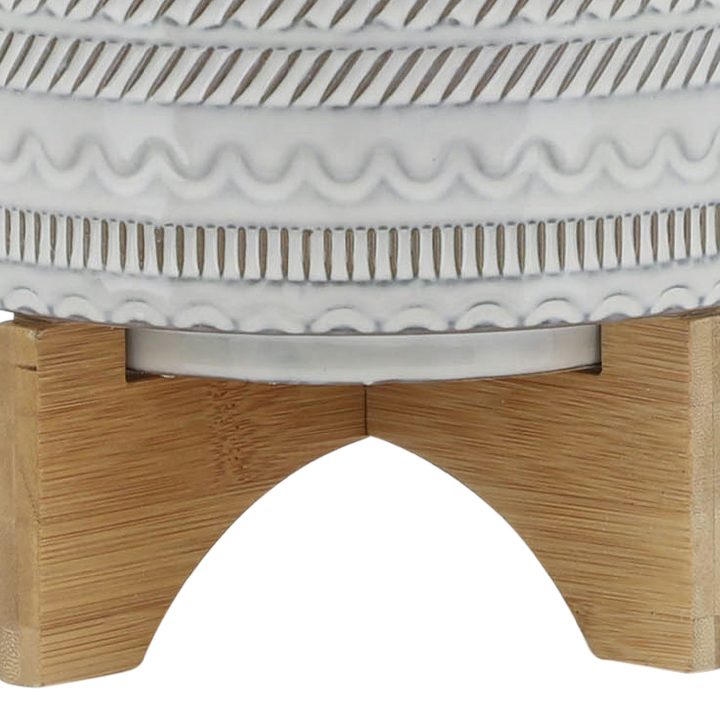8" Tribal Planter W/ Wood Stand, Beige