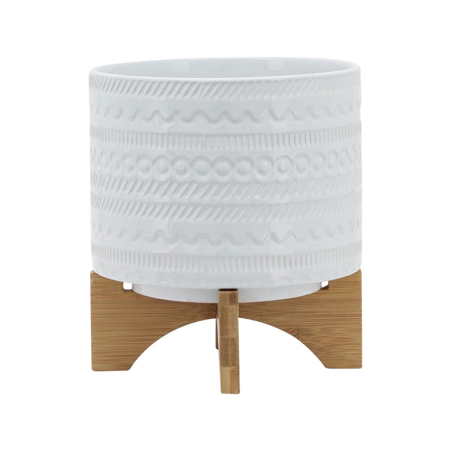 8" Tribal Planter W/ Wood Stand, White. Adorn Your Space With This Tribal Planter. This Planter On Wood stand Will Help Upgrade Your Plant Game In Style. Made Of Ceramic, This Has A Glossy White Finish. This Planter Will Add A Bit Of Chic Nature To Your Living Space. It Will Help You Start Your Own Little Garden Indoors!