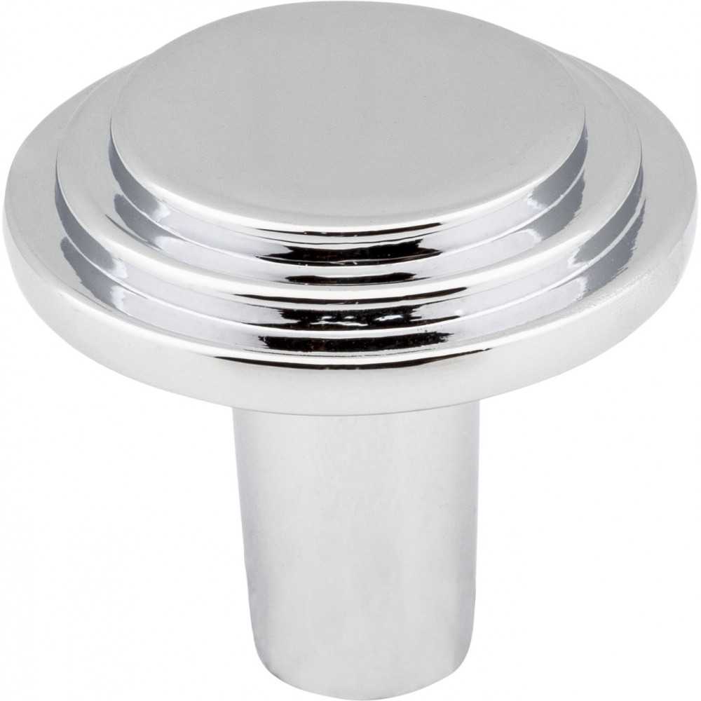 - 1-1/8" Diameter Stepped Cabinet Knob. Packaged with one 8-32 x 1" and 1-3/4" Break-away screw. Finish: Polished Chrome