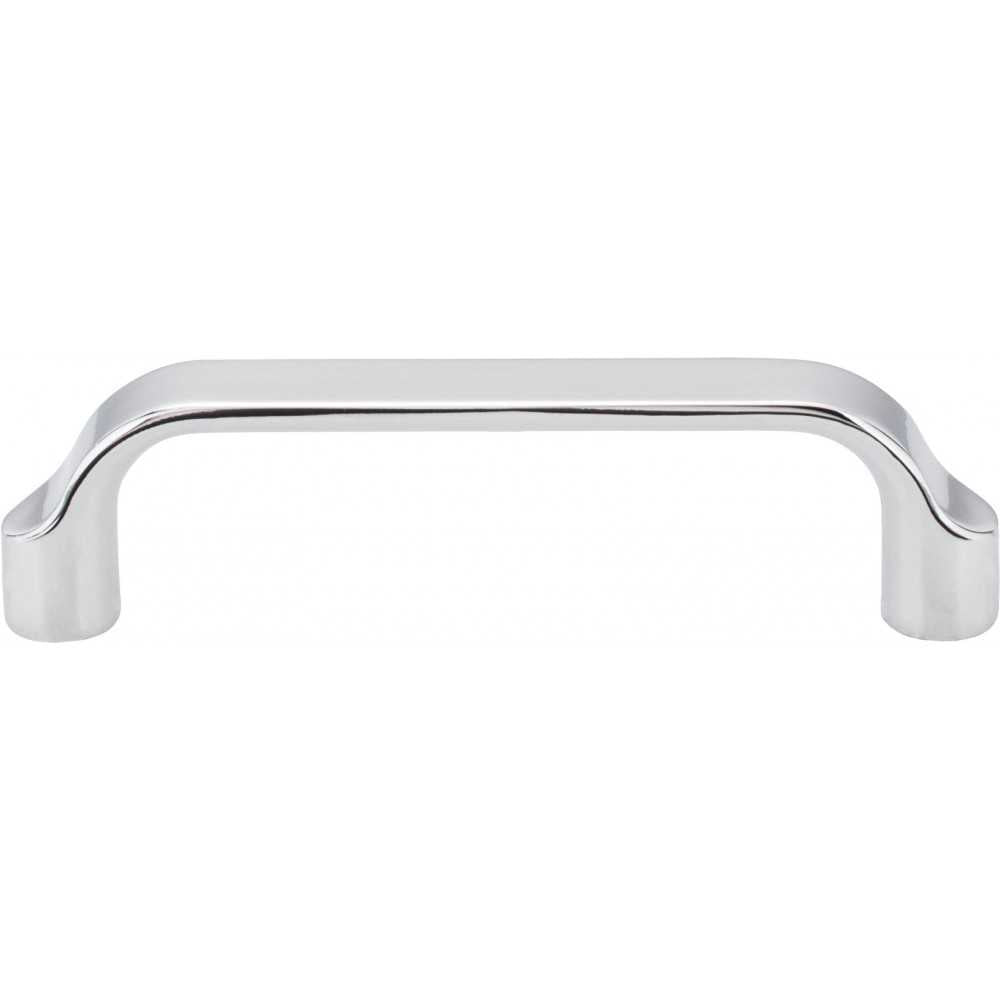 Brenton from Elements features a understated bar pull that doesn't skimp on character. The rounded feet of this Polished Chrome 4-5/16" overall length pull curve inward towards a flat squared handle, taking the typical bar pull from ordinary to extraordinary. A matching button knob echoes the pulls geometric characteristics. Available in six other finishes and three additional pull sizes. Each item is individually wrapped to protect the item from damage. Attachment hardware is included.