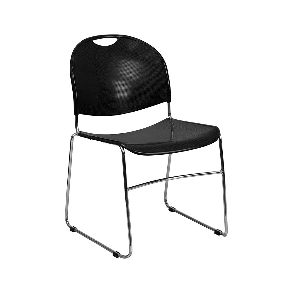 880 lb. Capacity Black Ultra-Compact Stack Chair with Chrome Frame