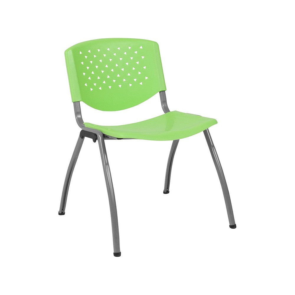 880 lb. Capacity Green Plastic Stack Chair with Titanium Gray Powder Coated Frame