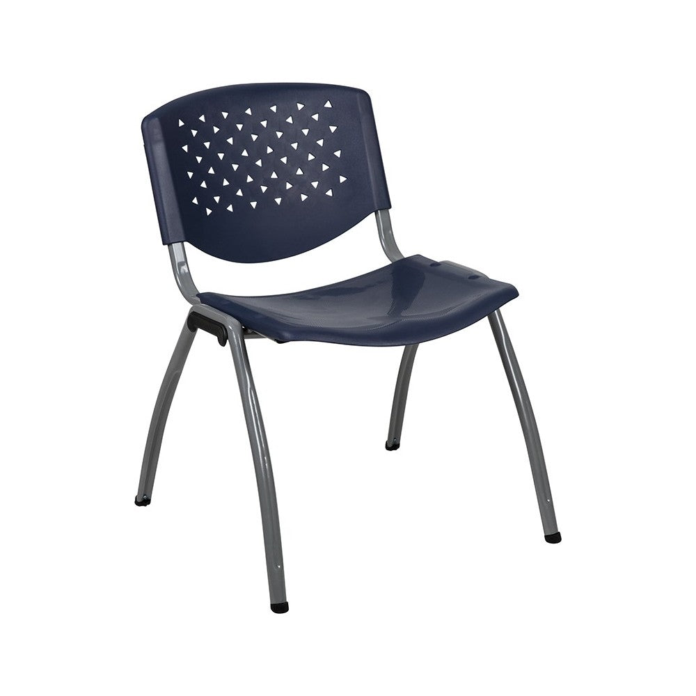 880 lb. Capacity Navy Plastic Stack Chair with Titanium Gray Powder Coated Frame