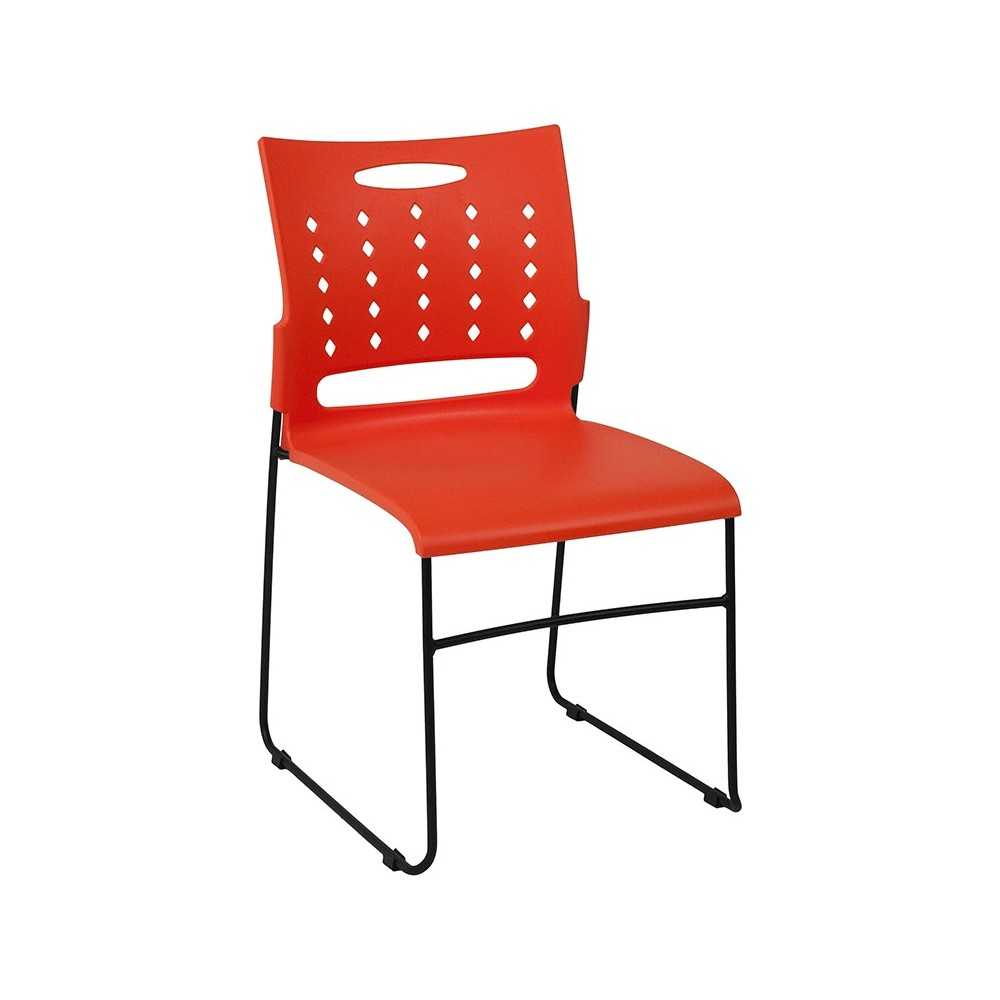 The sled base stack chair with air-vent back is a practical solution when you need to have extra chairs available for special events and unexpected company. A heavy duty, plastic seat and back, molded in an ergonomically contoured design, provide great comfort and reinforce good posture. The air-vented back on this chair allows air to circulate, keeping you cool. A powder coated frame finish on the sled base protects it from scratches and a front support brace gives it added strength. In fact, total weight capacity for this chair is an amazing 881 pounds. These chairs feature a handle cutout in the seat back and stack up to 5 high for transport and storage. Non-marring plastic floor glides protect your floors by sliding smoothly when you need to move the chair. No assembly is required - this chair ships to you fully assembled. Designed for both commercial and residential use, this multipurpose, stackable chair is a great choice for training rooms, sidewalk cafes and your home. [RUT-2-OR-GG]