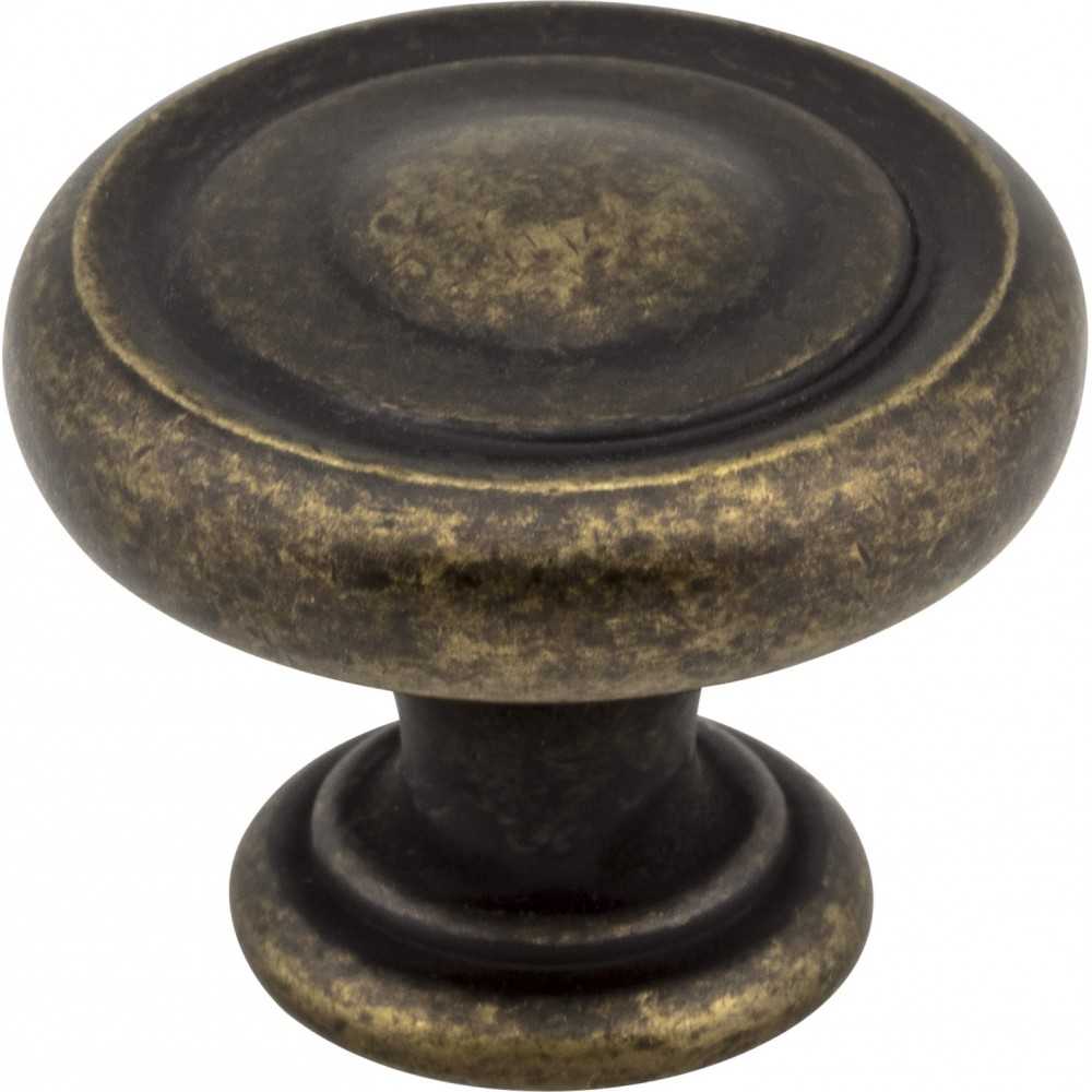 - 1-1/4" Diameter Button Cabinet Knob. Packaged with one 8-32 x 1" and 1-3/4" Break-away screw. Finish: Distressed Antique Brass