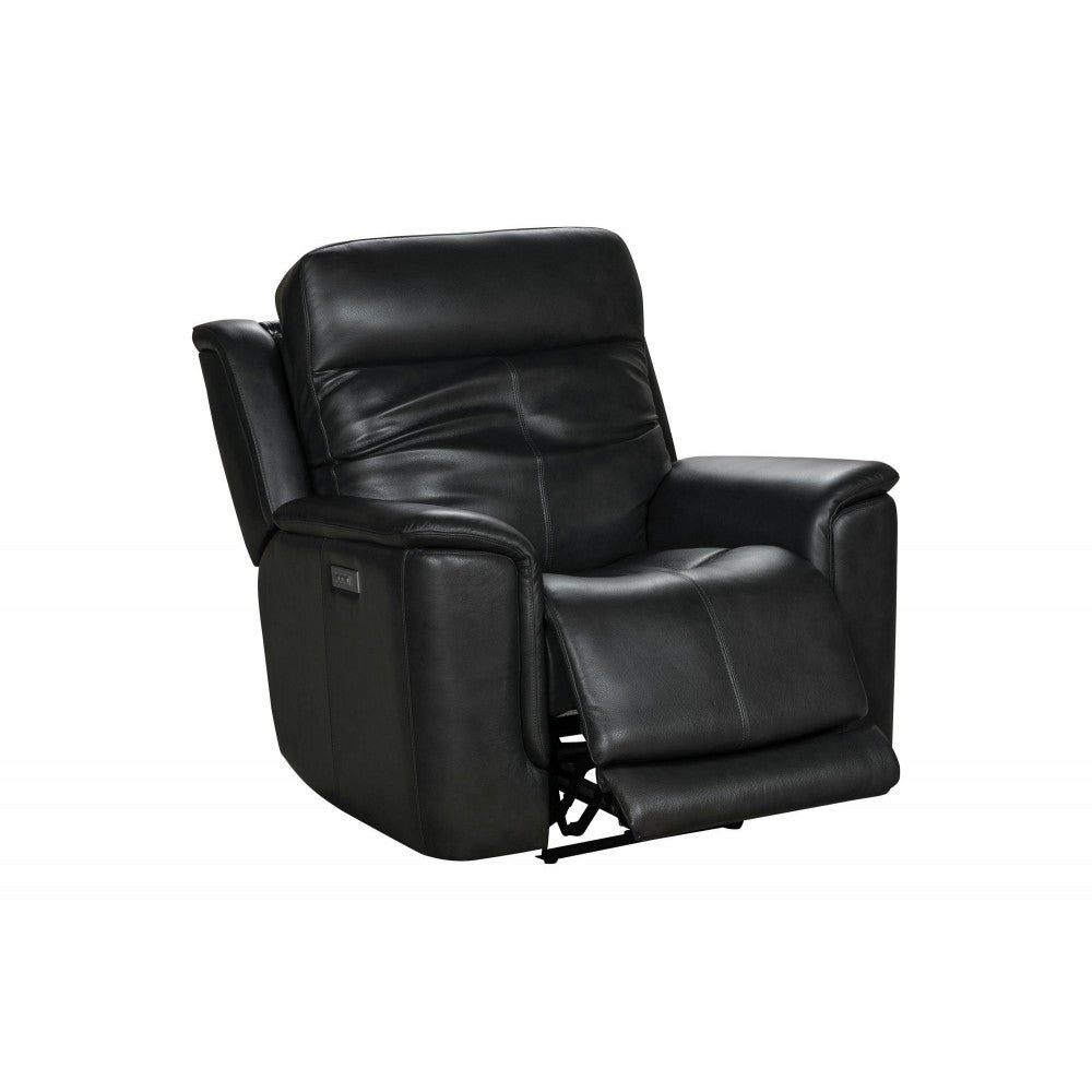 Casual modern power recliner with power headrest and power lumbar. This recliner features pad over chaise bucket seating with pocketed coil springs, slim line arm pads and a plush 44.1" high back. Power buttons have USB port to keep your devices charged. Matching Sofa and console lovesat available.