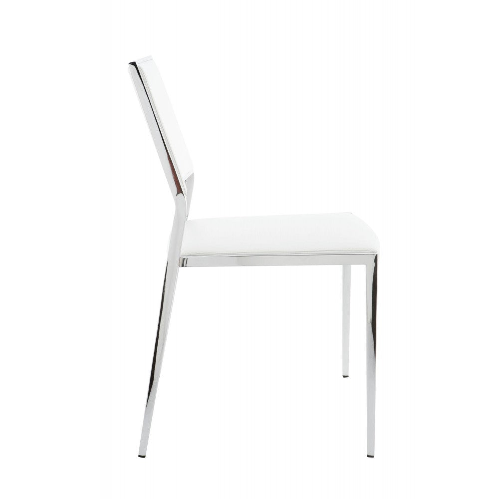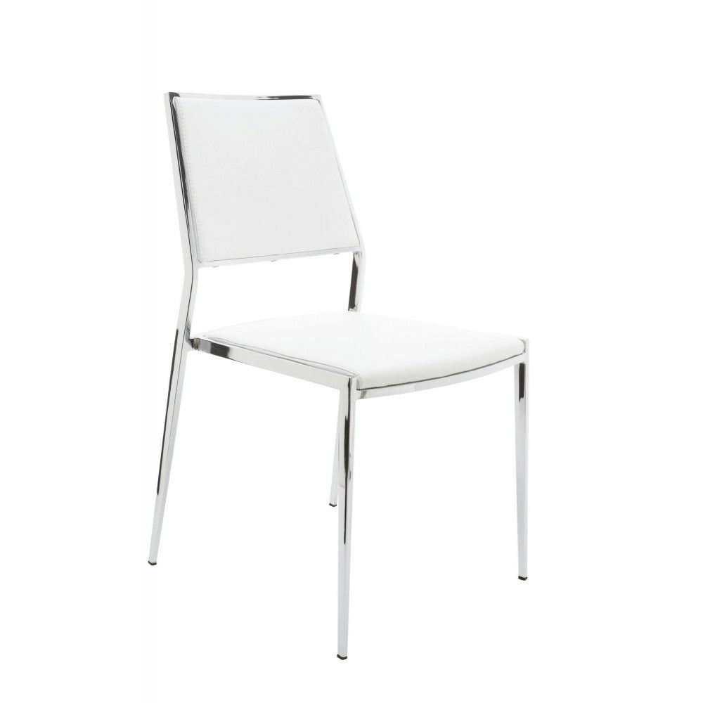 The Aaron Dining Chair is an alluring combination of stainless steel and naugahyde. The Aaron's clean, versatile, and contemporary geometric frame provides comfort with a streamlined elegance.