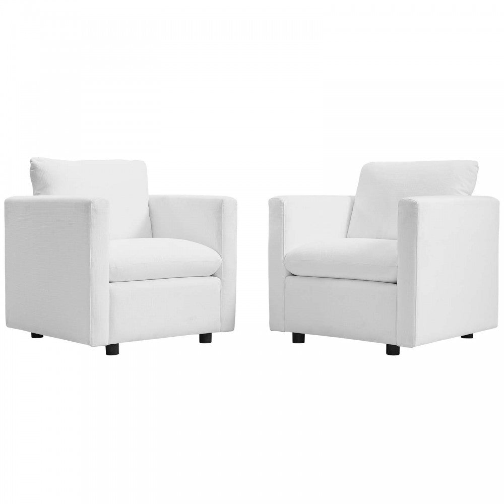 Lounge in style with Activate Armchair Set of 2. A versatile addition to a family room, apartment, office, or small living space, Activate is a cozy modern chair set made with dense foam padding, upholstered in soft polyester fabric, and black wood legs. Say goodbye to the days of hauling heavy furniture. Activate offers modern-day convenience as it ships directly to your home or apartment in a portable, compact box. With a casual yet tailored aesthetic, this living room armchair set easily unpacks to become a favorite lounge spot in your home.