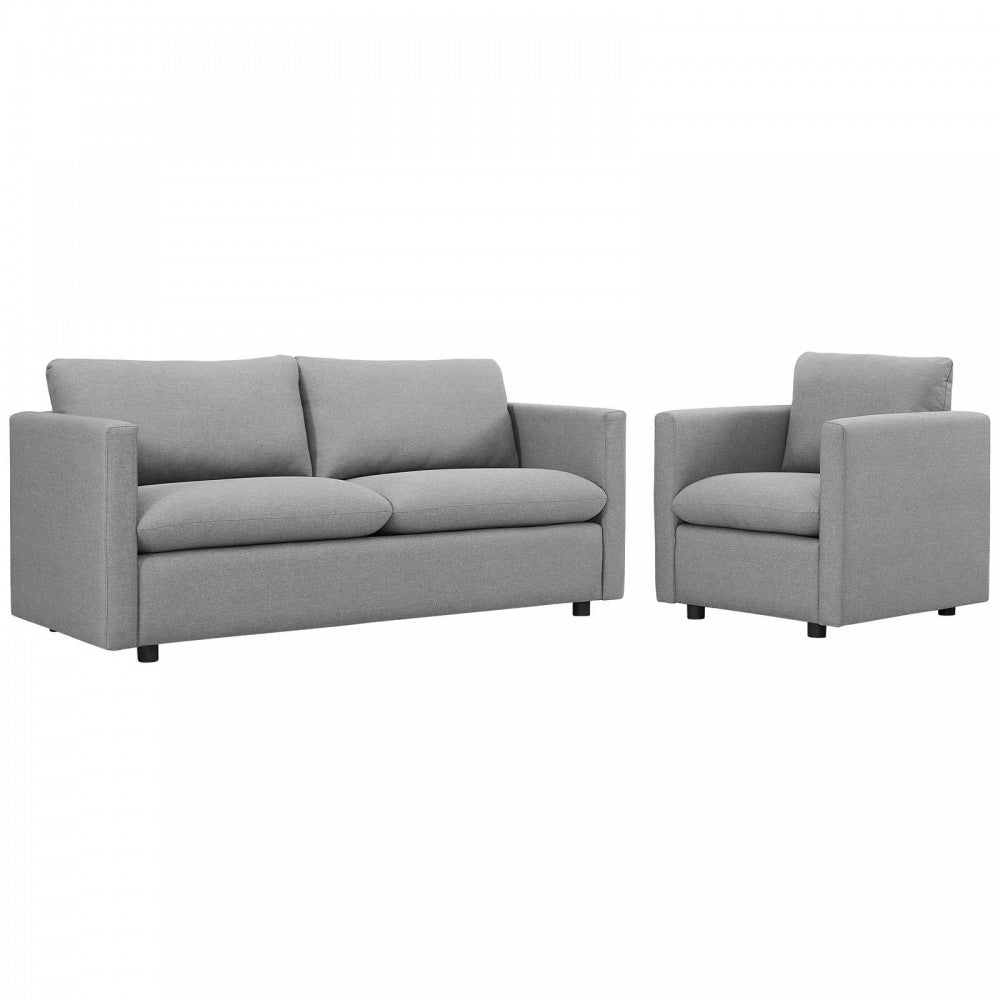 Activate Upholstered Fabric Sofa and Armchair Set, Light Gray