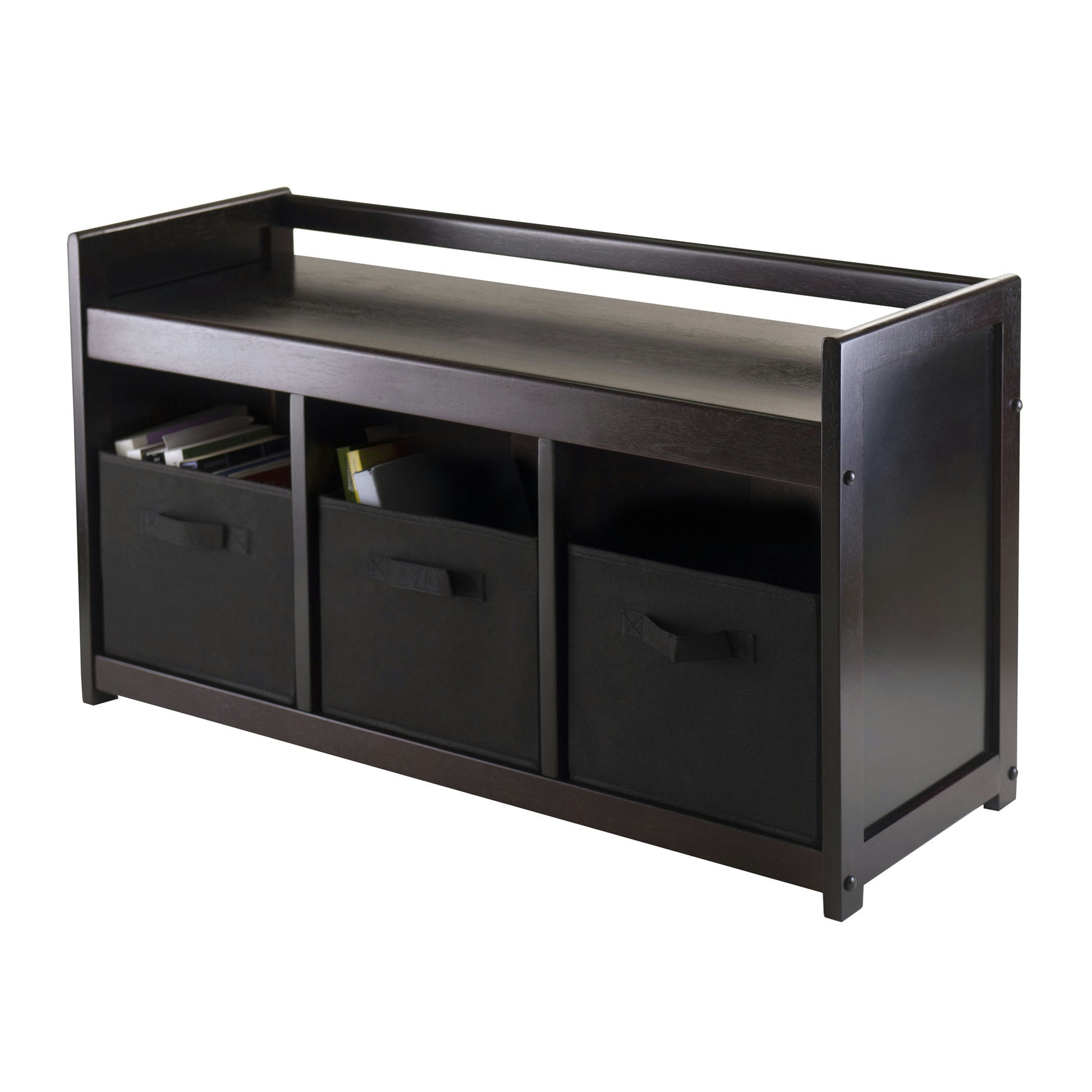 Addison 4-Pc Storage Bench with 3 Foldable Fabric Baskets, Espresso and Black