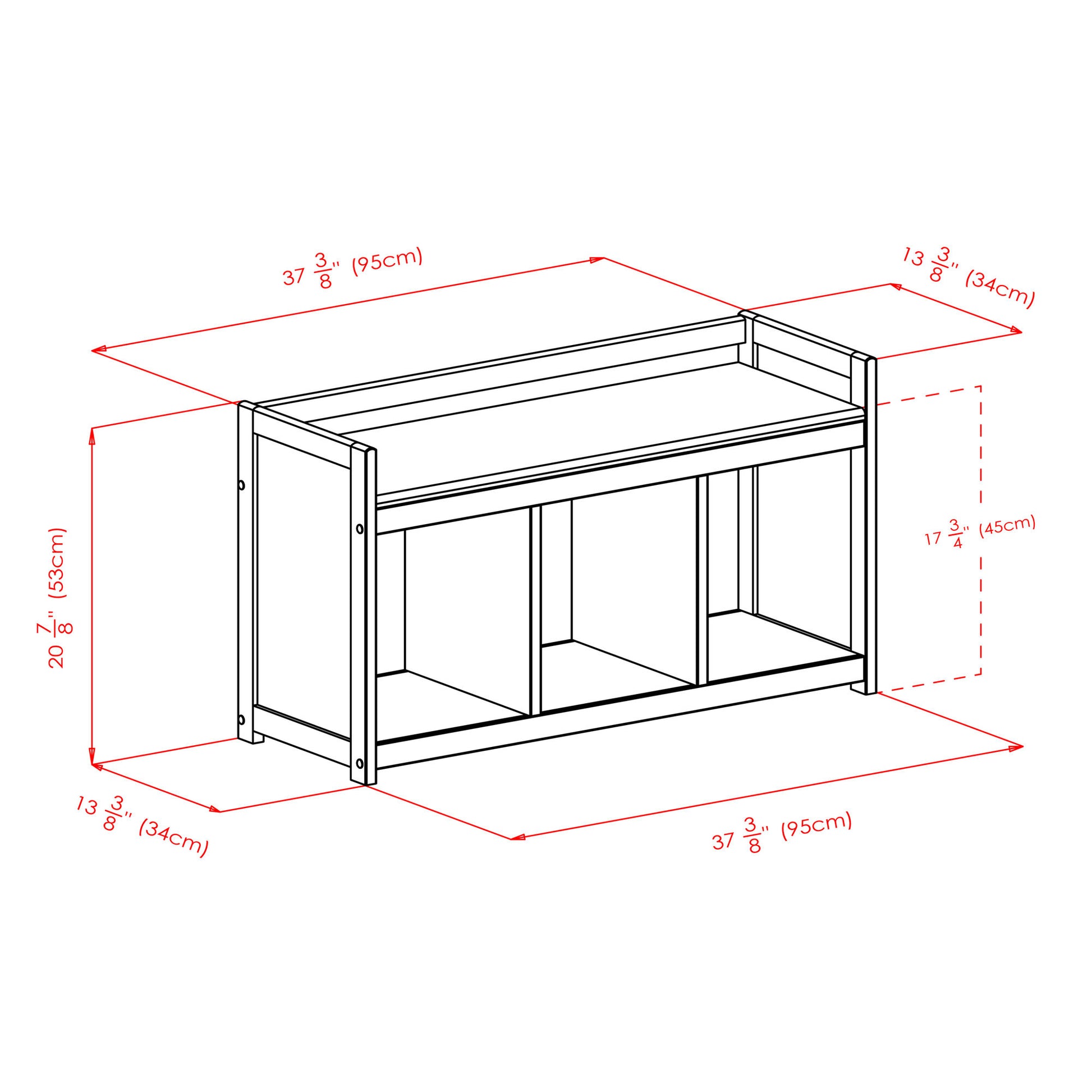 Spacious bench features three storage compartmens. Simple and elegant design that includes 3 baskets for added organization.