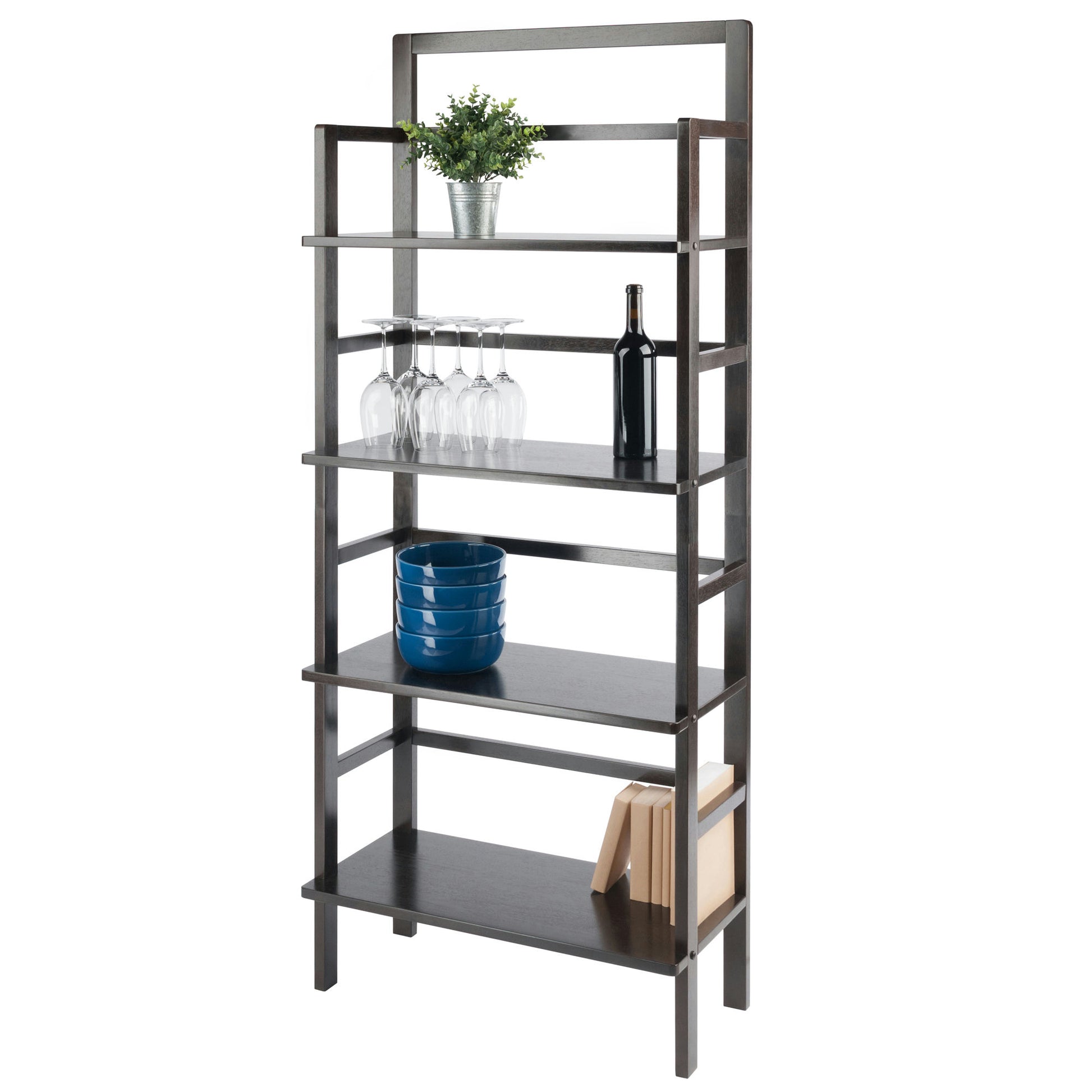 A contemporary twist on an antique Tuscan baker's rack, the Winsome Aiden Baker's Rack is a fantastic storage option for your kitchen, living room, or dining area. Its four open shelves with 15" of clearance are perfect for books, dishes, or display items. Made of Solid Wood in a rich Coffee finish.
