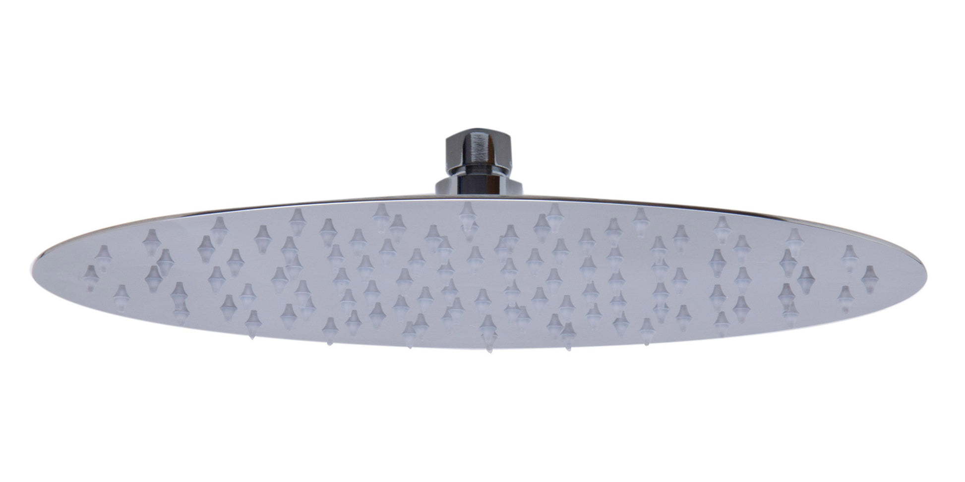 Transform your bathroom with this 12 inch ULTRA THIN oval shaped rain shower head. You won't believe your eyes and neither will your next house guest. Enjoy the modern sleek thin design and be reassured that it's made of solid stainless steel unlike traditional rain shower heads made of brass.