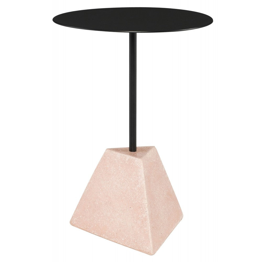With a sturdy geometric block base, the Alma side table has an industrial appeal. A round matte black top and thin matte black stand are balanced on a structural terrazzo base. It brings subtle artistic flair to any contemporary space.