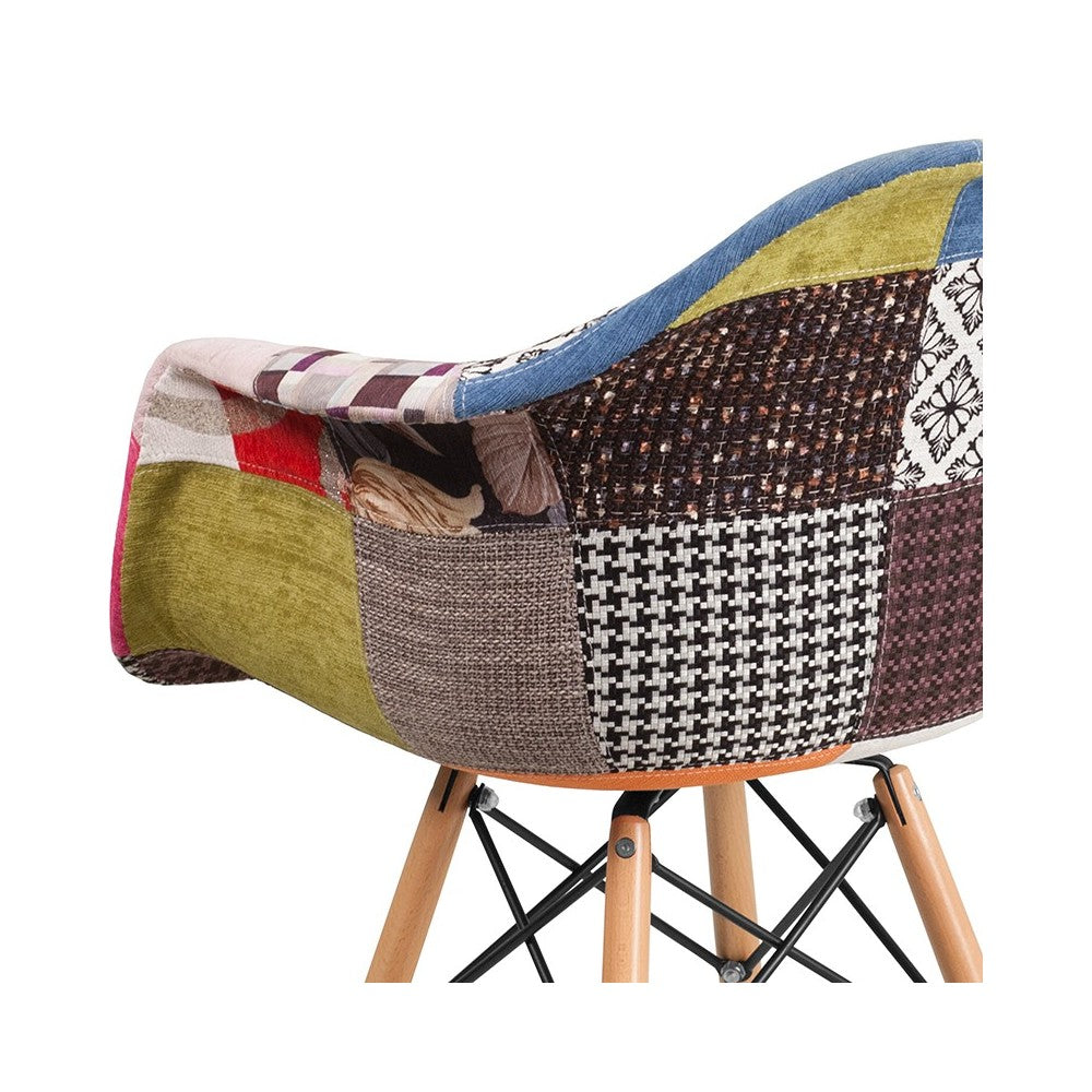Alonza Series Milan Patchwork Fabric Chair with Wooden Legs