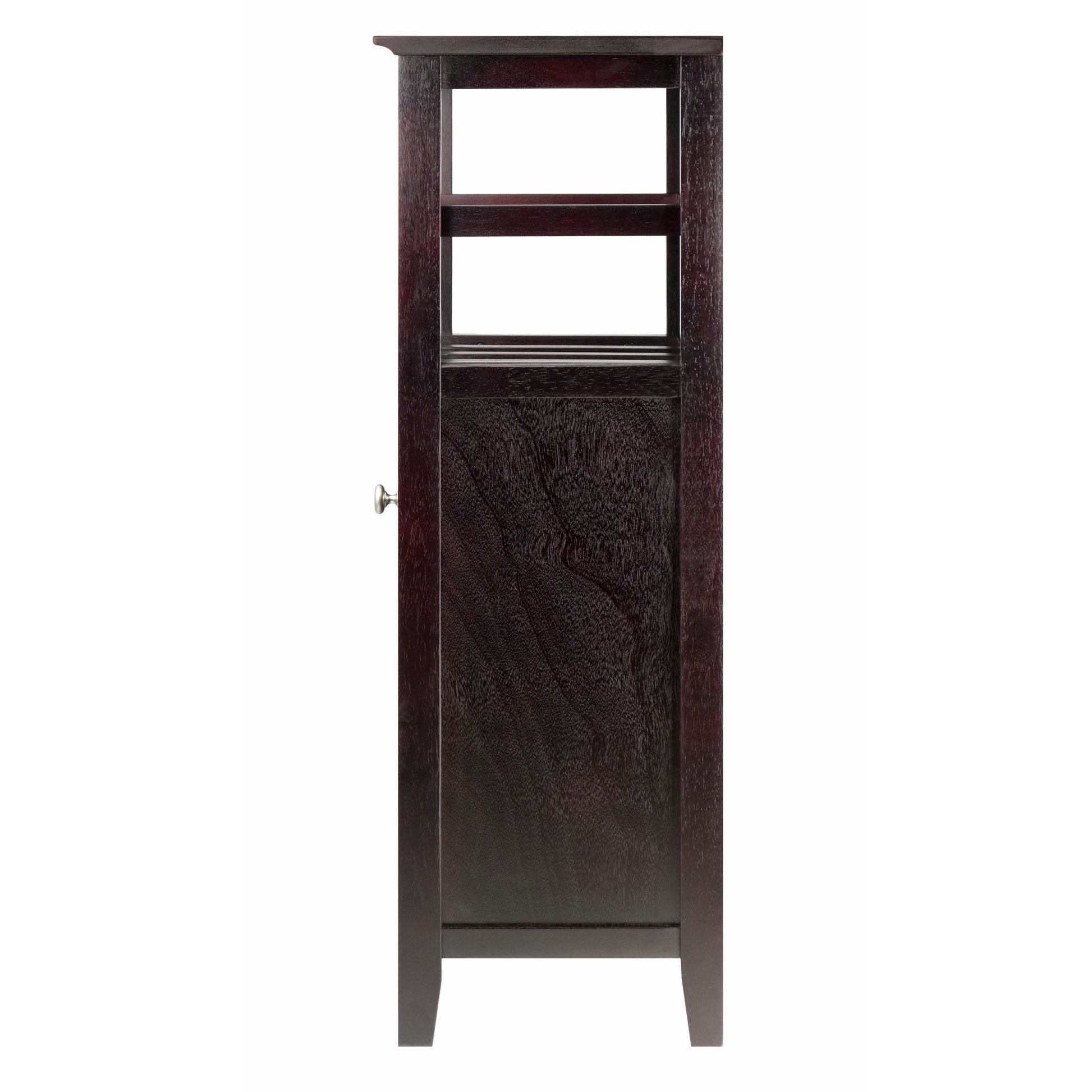 The Alta wine storage shelf brings a contemporary solution to your wine storage and entertaining needs with its clean lines, espresso finish, and simplistic design. The two top shelves can be used either for 8 wine bottles or 4 wine bottles on the top shelf and accessory storage on the bottom. The cabinet has a glass door so you can see all your wine glass storage within.
