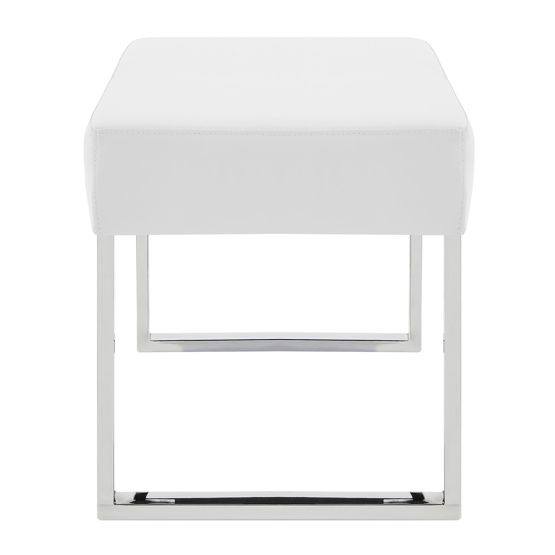 The Armen Living Amanda contemporary bench is a beautiful piece sure to add extra style to any modern living room. The Amanda boasts sleek faux leather upholstery over a sturdy chrome metal frame. The Amanda's sleek metal legs assure durability without detracting from the style of the piece. The Amanda bench is ideal when paired with the Amanda dining table, corner sofa, and side chair. This piece is a unique and eye-catching bench that elevates any home style. This bench is crafted with the best materials for a high-quality, long lasting bench you can display in your home. The Amanda can be used in multiple parts of the home and can serve both functional and decorative purposes. You can place this beautiful bench, in your bedroom, hallway, living room, den or even in your home office.