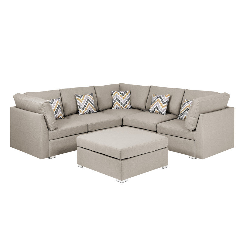 Comfort, Style, and Quality! These are the important features for the Amira Collection. This beautiful modular sofa sectional with ottoman and five matching accent pillows will fit into any living room and impress your guests! The comfortable beige linen fabric with matching accent pillows will light up your living room with the most trendiest of looks. Perfect for apartments, condo, loft, and single family home, you will be able to welcome multiple guests comfortably where everyone is able to enjoy entertainment together.