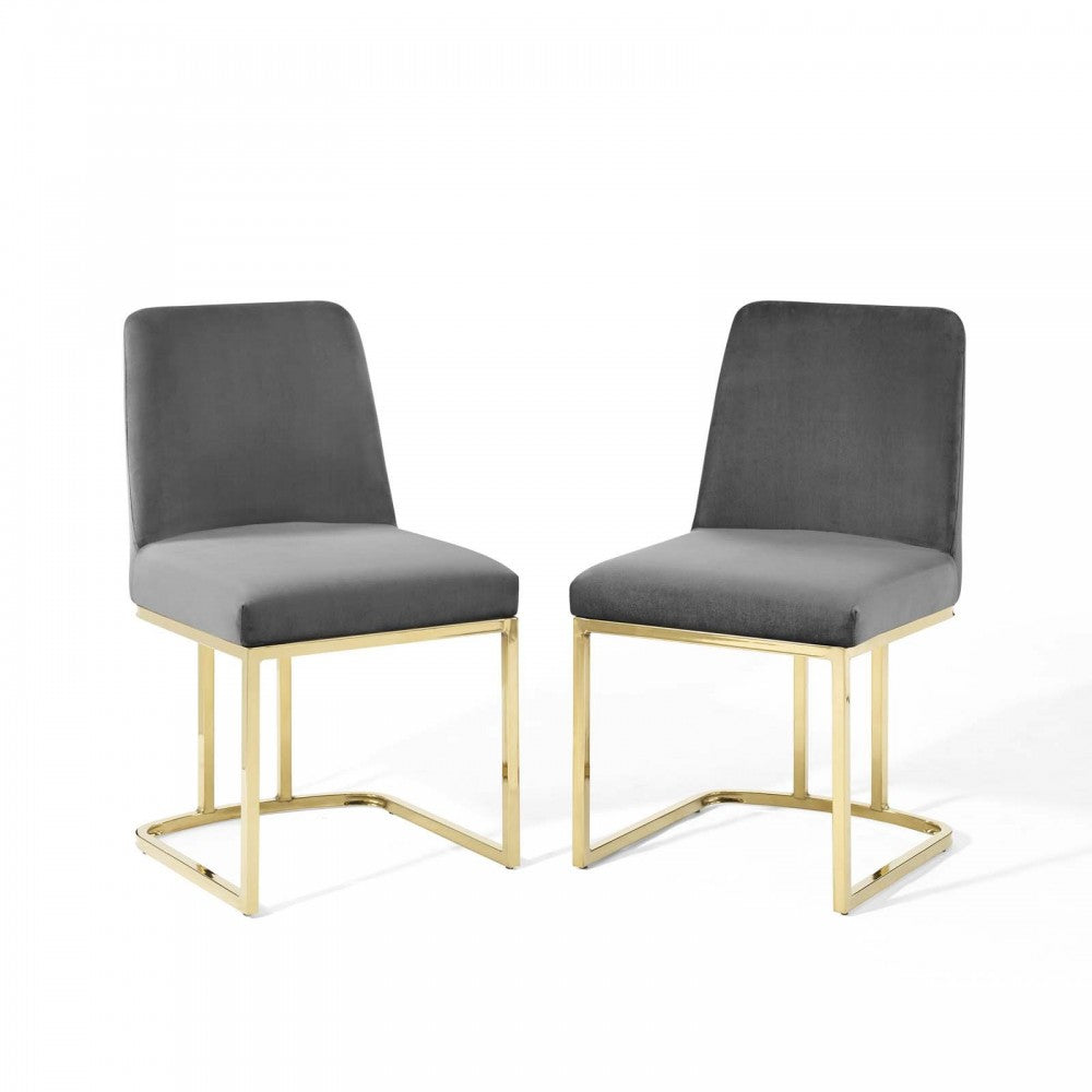 Amplify Sled Base Performance Velvet Dining Chairs - Set of 2, Gold Gray