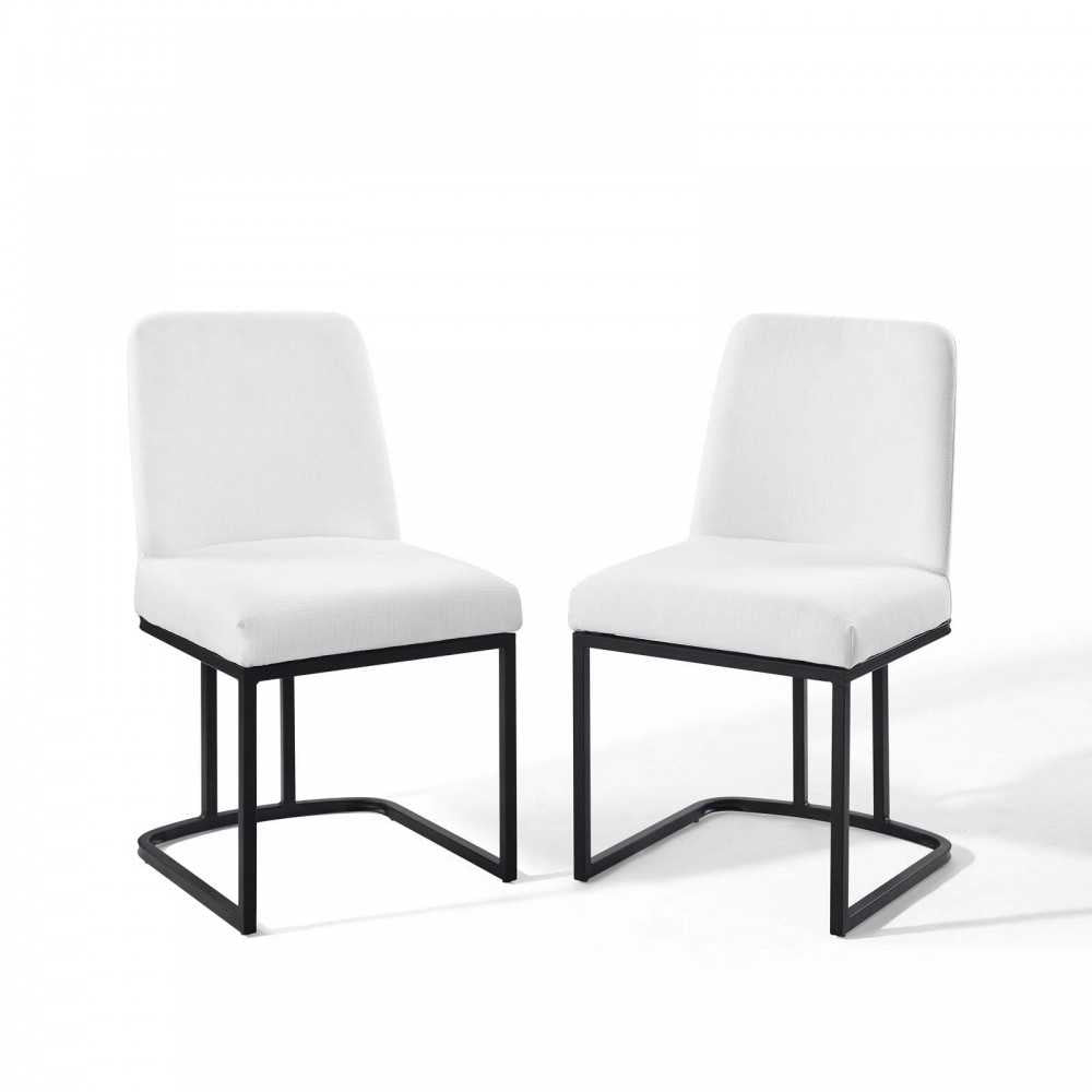Amplify Sled Base Upholstered Fabric Dining Chairs - Set of 2, Black White