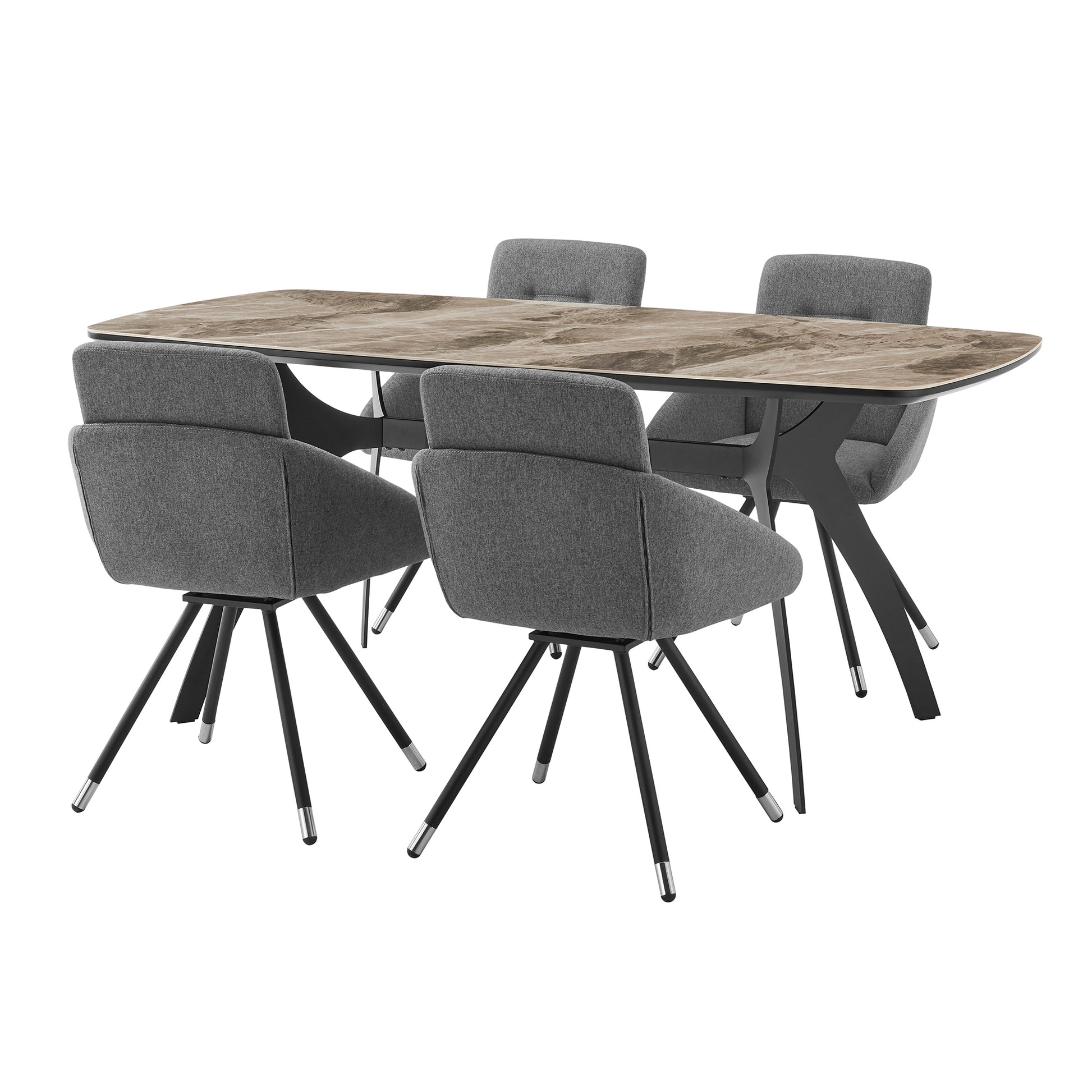 Andes and Granada Gray Fabric 5 Piece Rectangular Dining Set