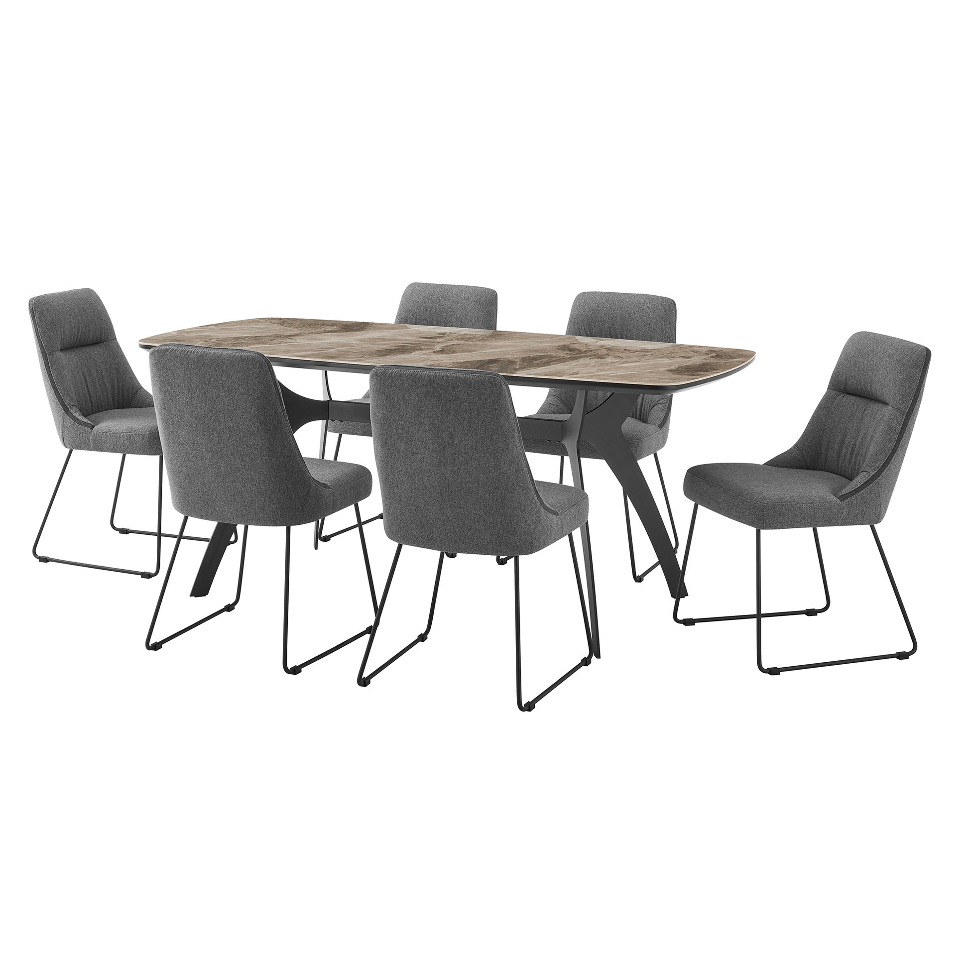 Andes and Quartz Gray Fabric 7 Piece Rectangular Dining Set
