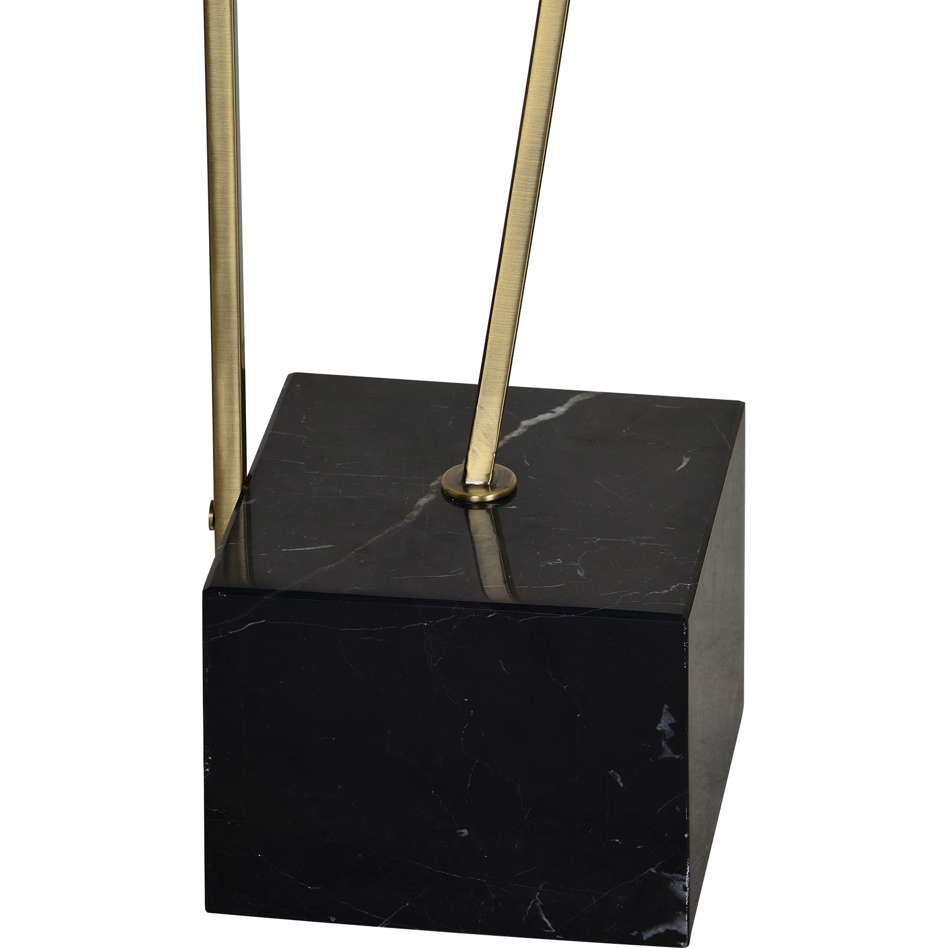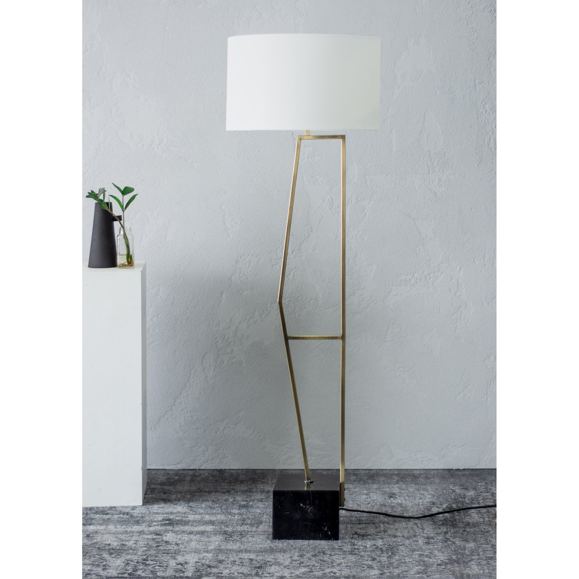An unexpected shape makes this floor lamp a work of art. Designed with a black marble base, an antique brushed brass plated iron structure and an off-white linen shade, it adds a dramatic moment to the modern den. The foot switch makes it easy to illuminate the space.