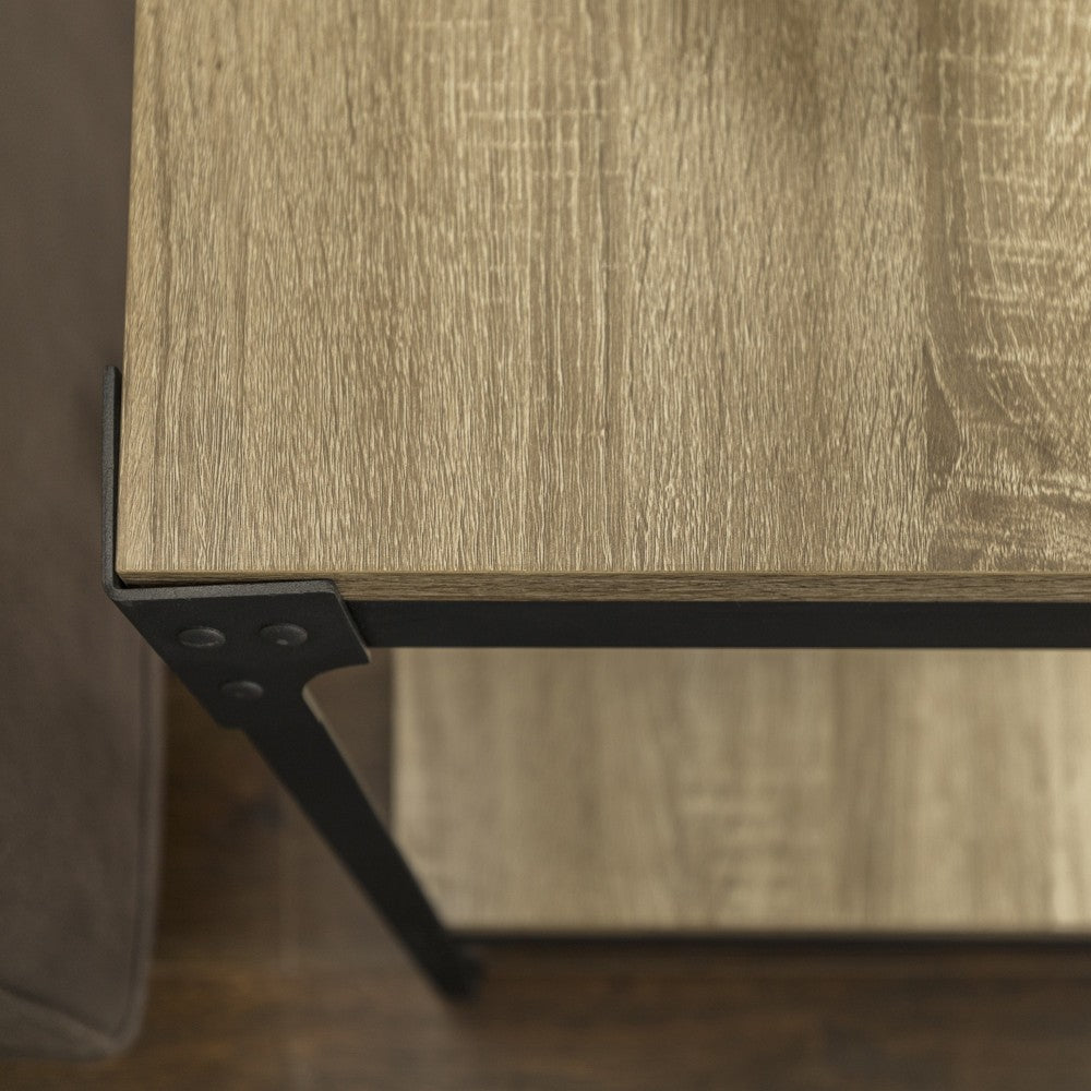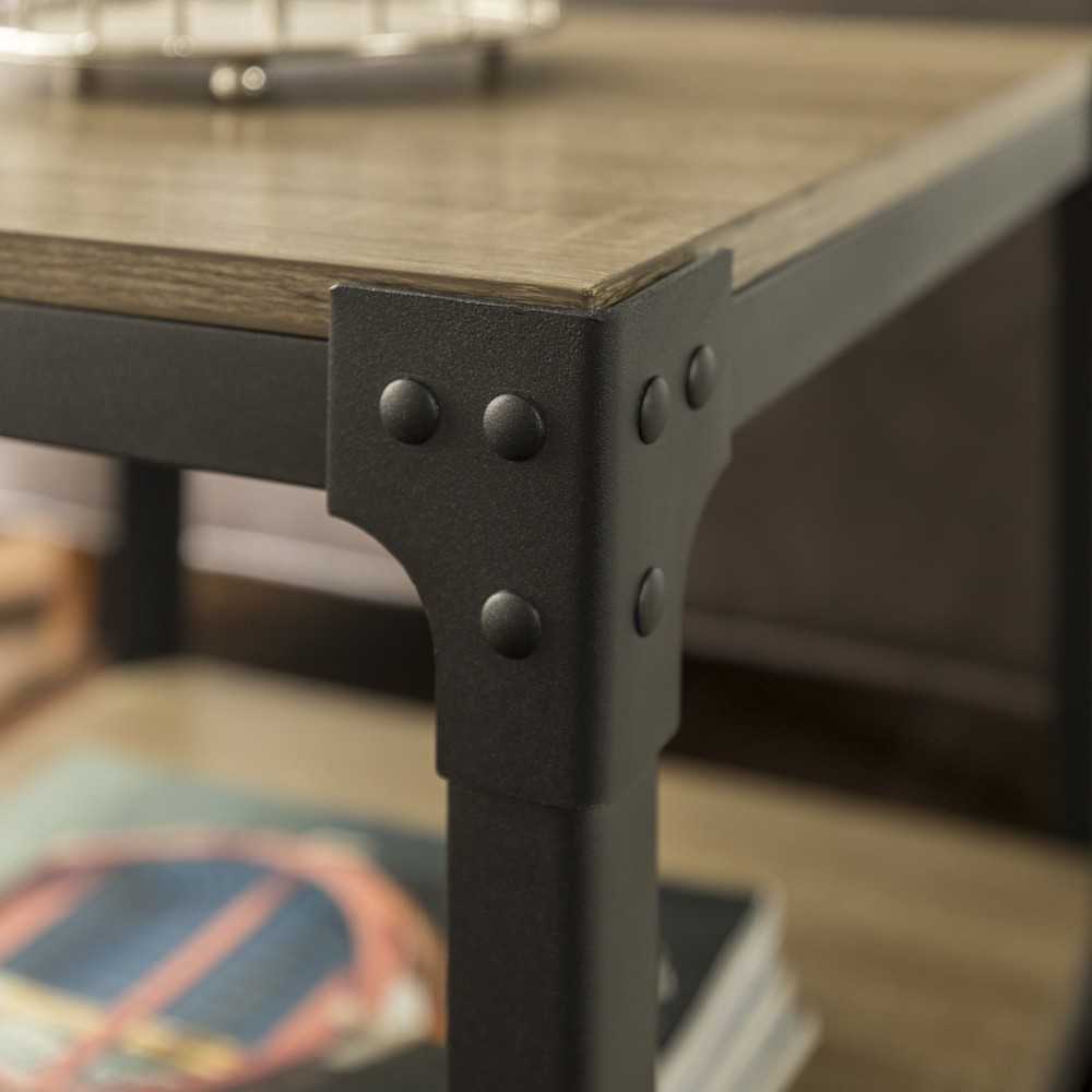 Incorporate an industrial edge to any space in your home with these mixed material side tables. Made of powder coated steel and warp-resistant MDF that's pressed with a premium multi-grain laminate, these square accent tables are built to handle everyday use. Whether they're used as nightstands or sofa tables, these pieces can accommodate to your design wants and needs. Each table includes a lower open shelf for additional storage. Set includes two end tables.