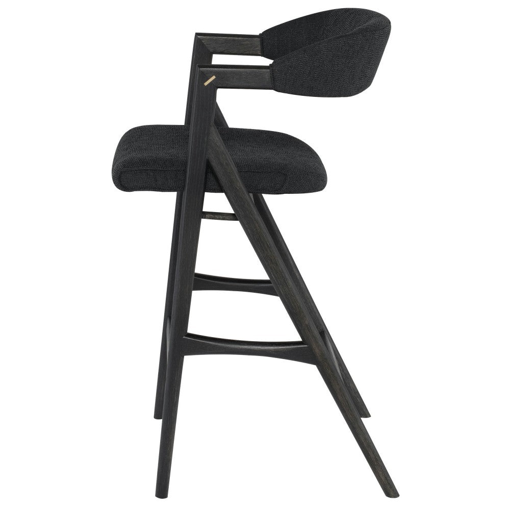 Clean cut lines create a strong frame for the Anita Bar and Counter Stool. The stool's solid oak legs are slightly angled, forming an intriguing profile. A soft seat and back add comfort and contrast to the strong wood details.