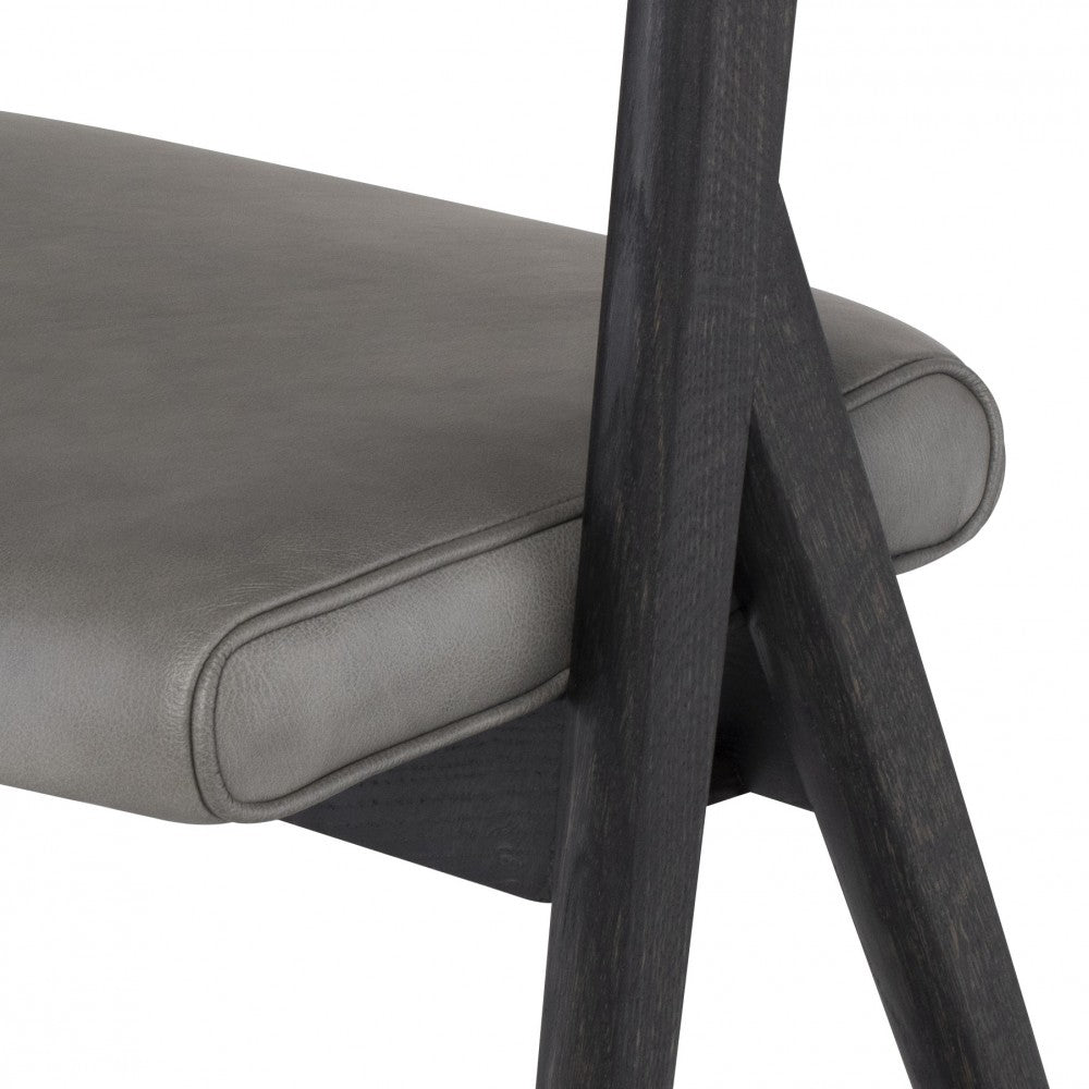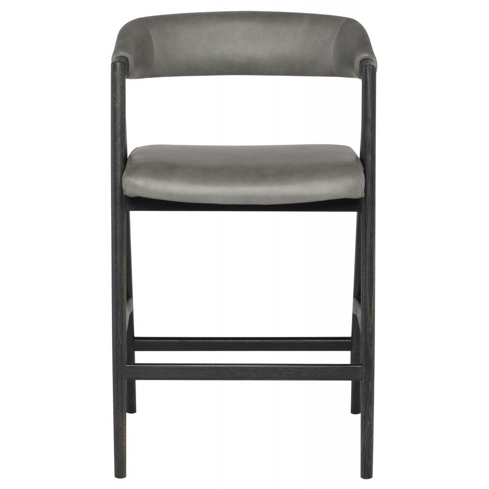 Clean cut lines create a strong frame for the Anita counter stool. The stool's solid oak legs are slightly angled, forming an intriguing profile. A soft leather seat and back add comfort and contrast to the strong wood details.