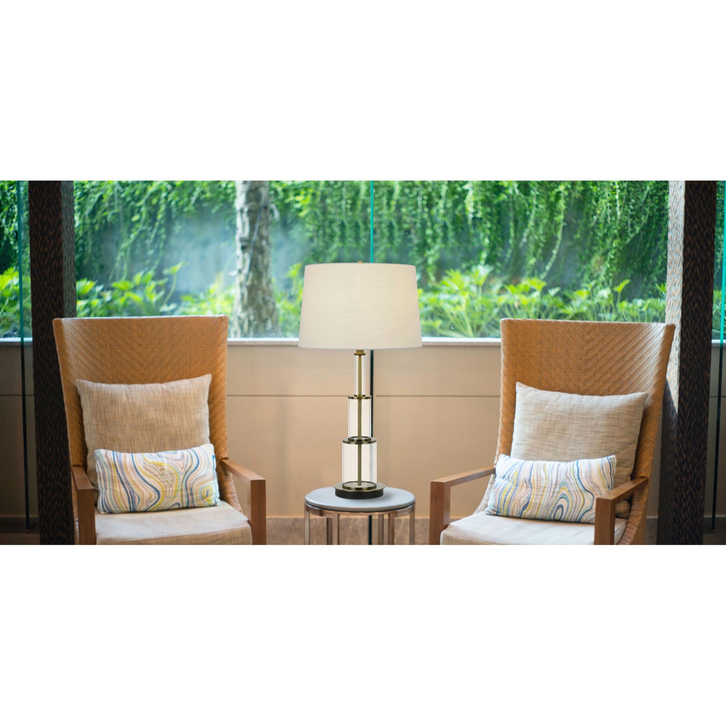 - Hardback linen shade included