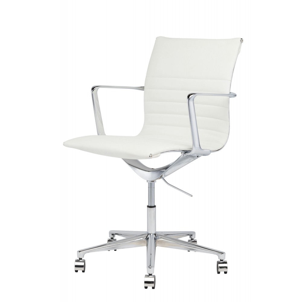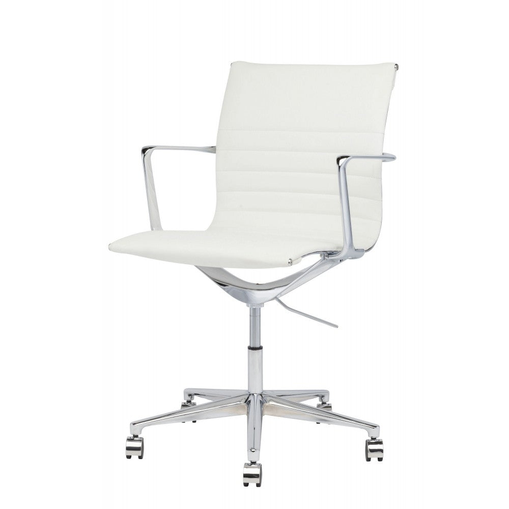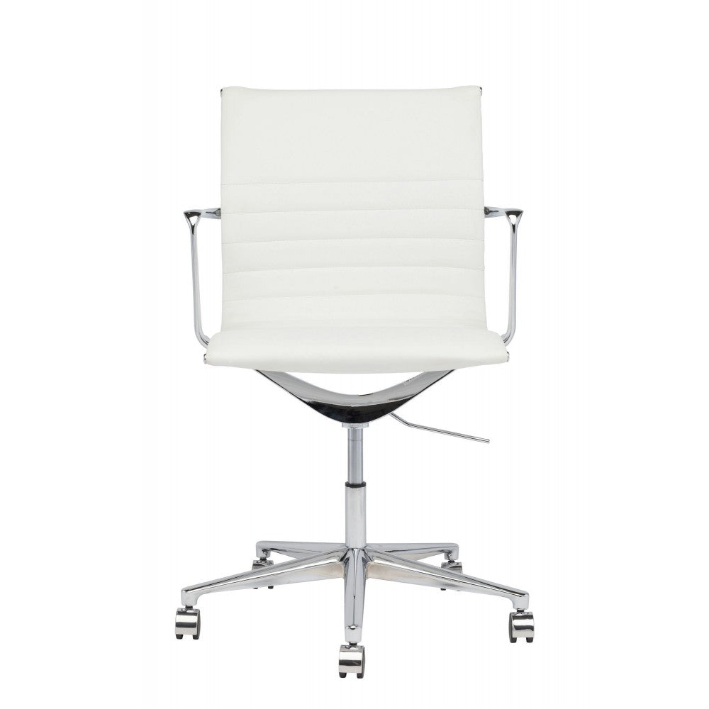 The sleek, modern Antonio office chair features a low back Naugahyde seat tailored with top stitching and sculpted chrome arms presenting a distinctive executive appeal. The Antonio has a 5 star castor base for 360 degree swivel and an adjustable height option.