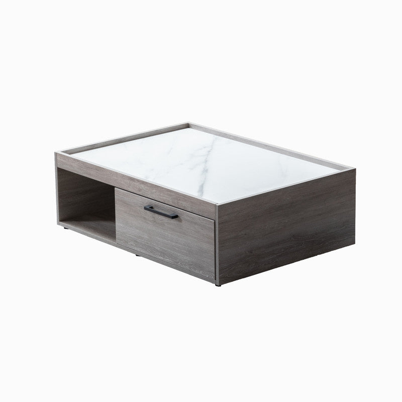 Apollo Gray Oak Finish Coffee Table with Marble Finish Top with Drawer