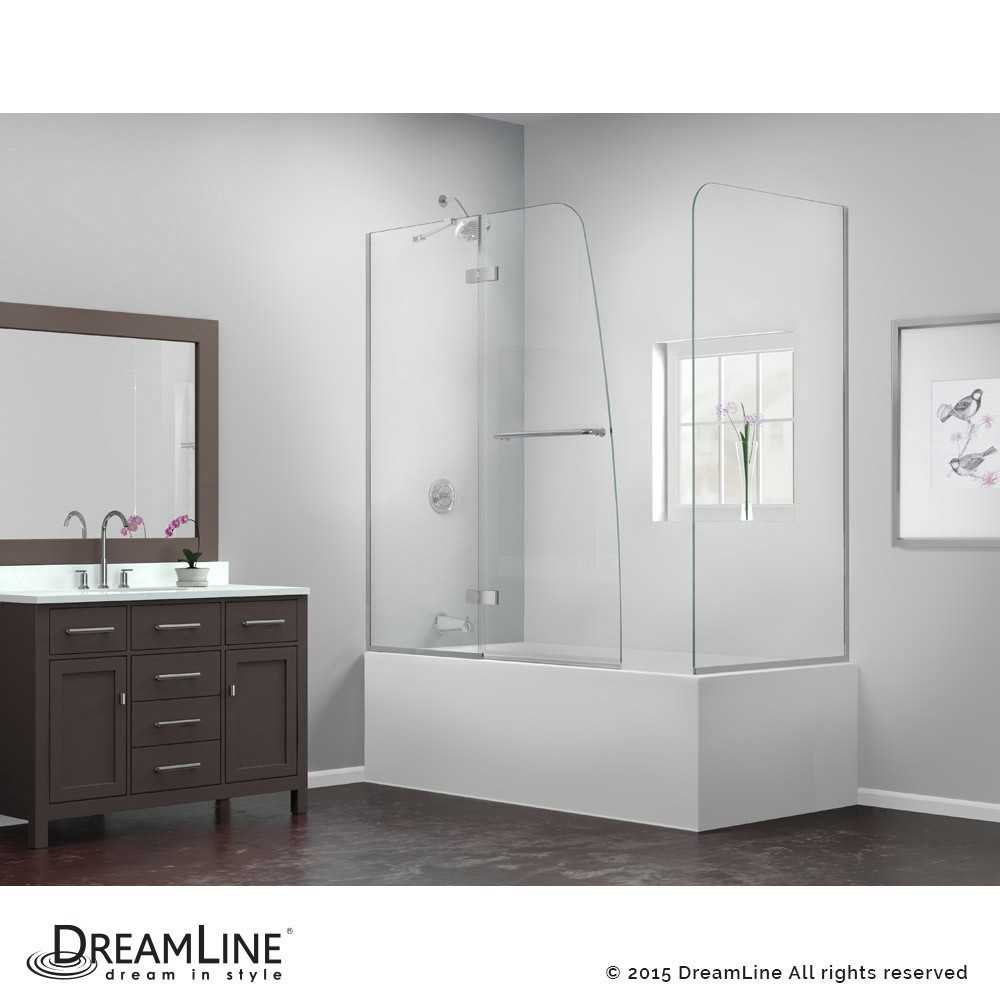 The DreamLine Aqua Ultra is frameless shower or tub screen with European appeal and modern architectural design. With a stunning curved silhouette that creates an open, inviting feel, the Aqua Ultra will transform your bathroom with elegant style to match its functionality. Configuration: Stationary Panel with Swing Door and Return Panel.