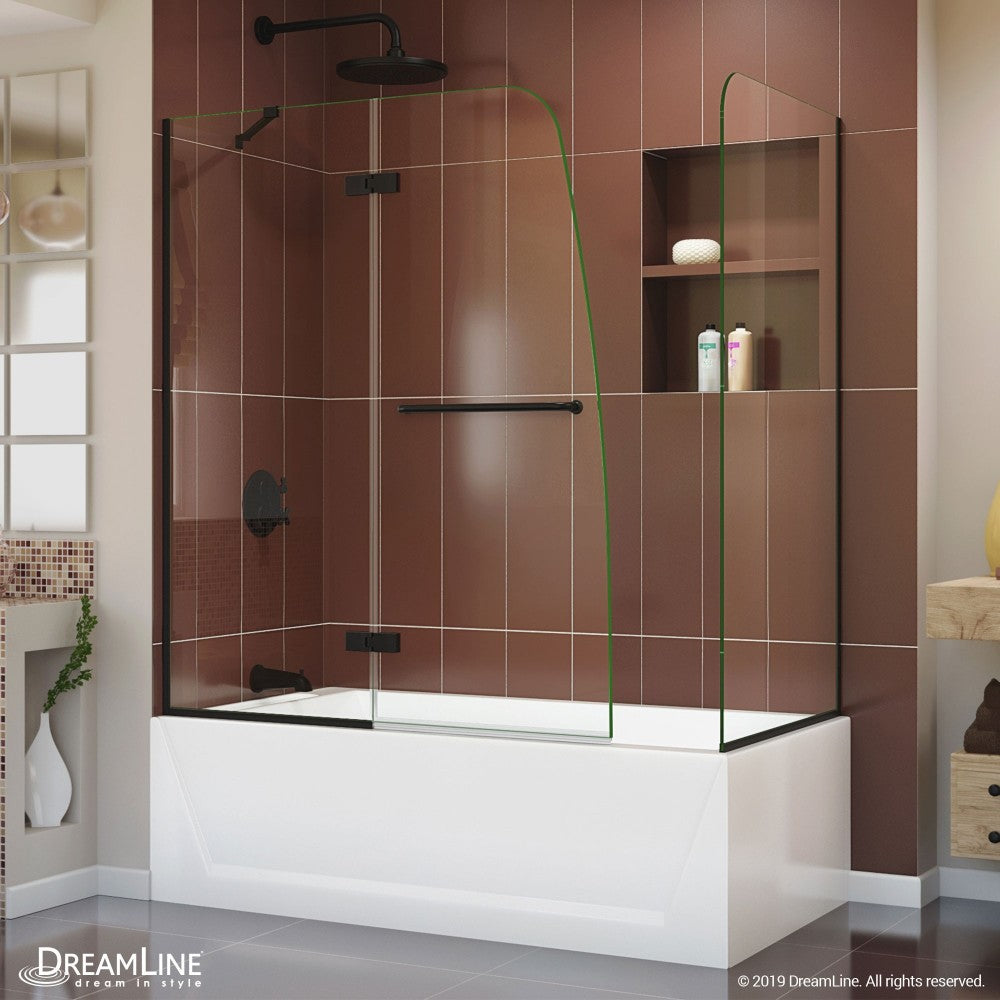 Aqua Ultra 48 in. W x 30 in. D x 58 in. H Frameless Hinged Tub Door with Return Panel in Satin Black