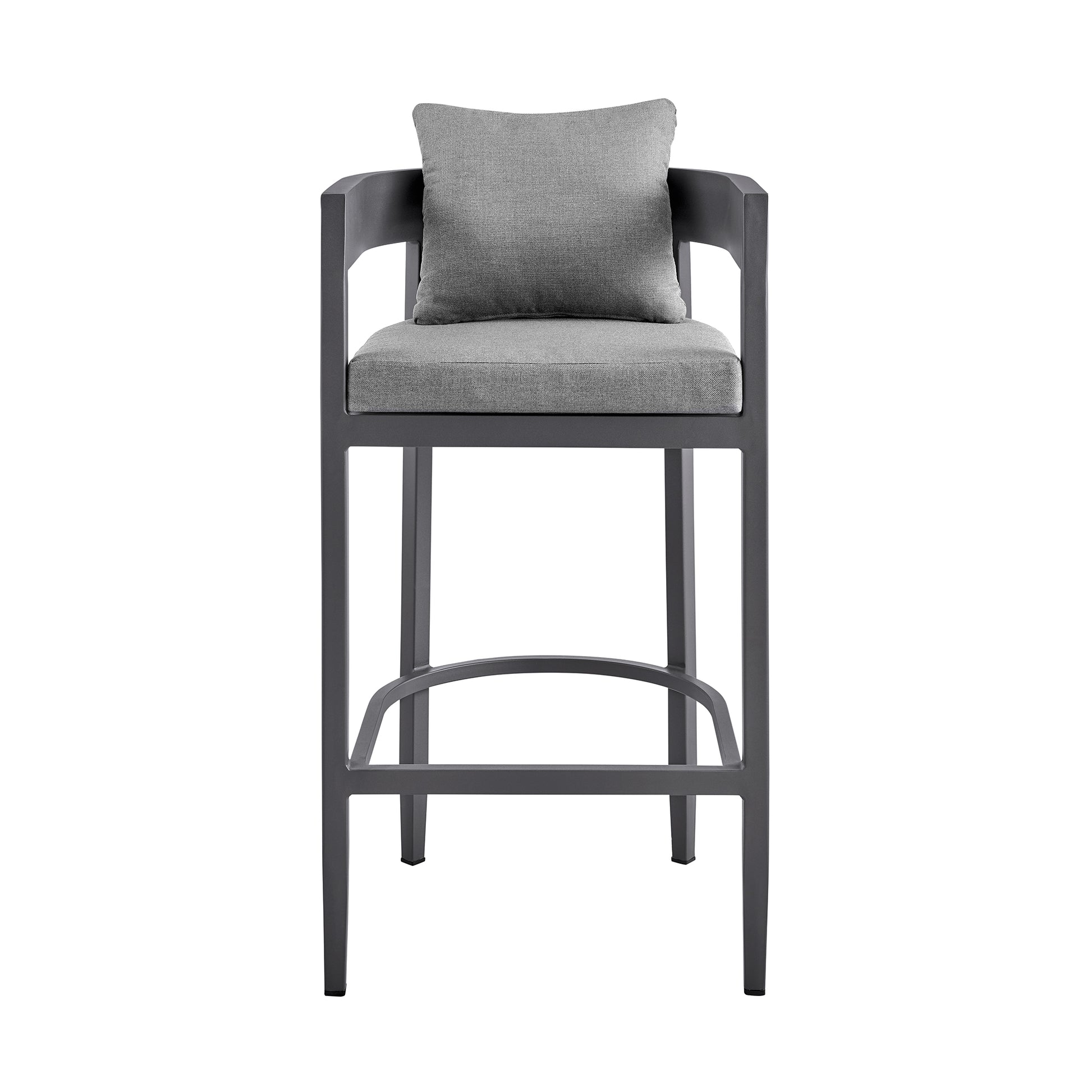 Argiope Outdoor Patio Counter Height Bar Stool in Aluminum with Grey Cushions