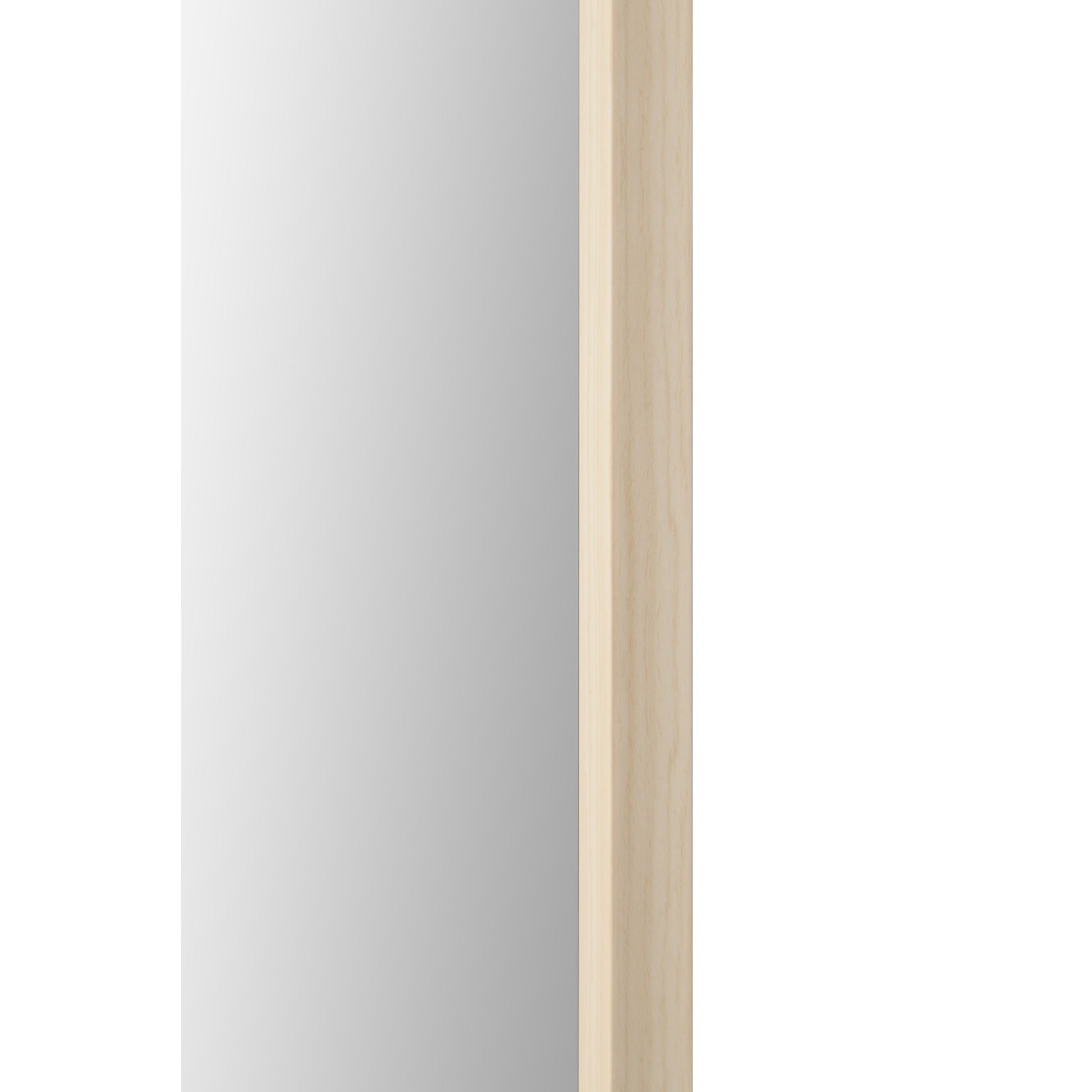 The soothing space gets a polished upgrade with this mirror in its midst. With a light natural wood grain frame, it effortlessly integrates into the neutral-toned interior. Capable of hanging vertically or horizontally, it holds several design options within the home.
