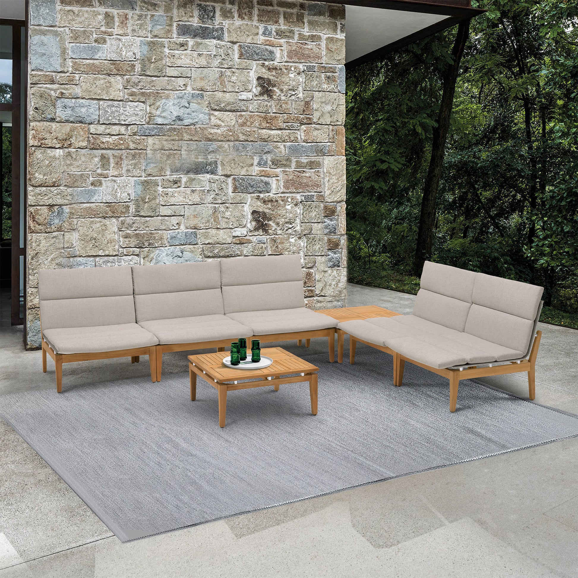 Arno 7 Piece Teak Wood Seating Set in Beige Olefin