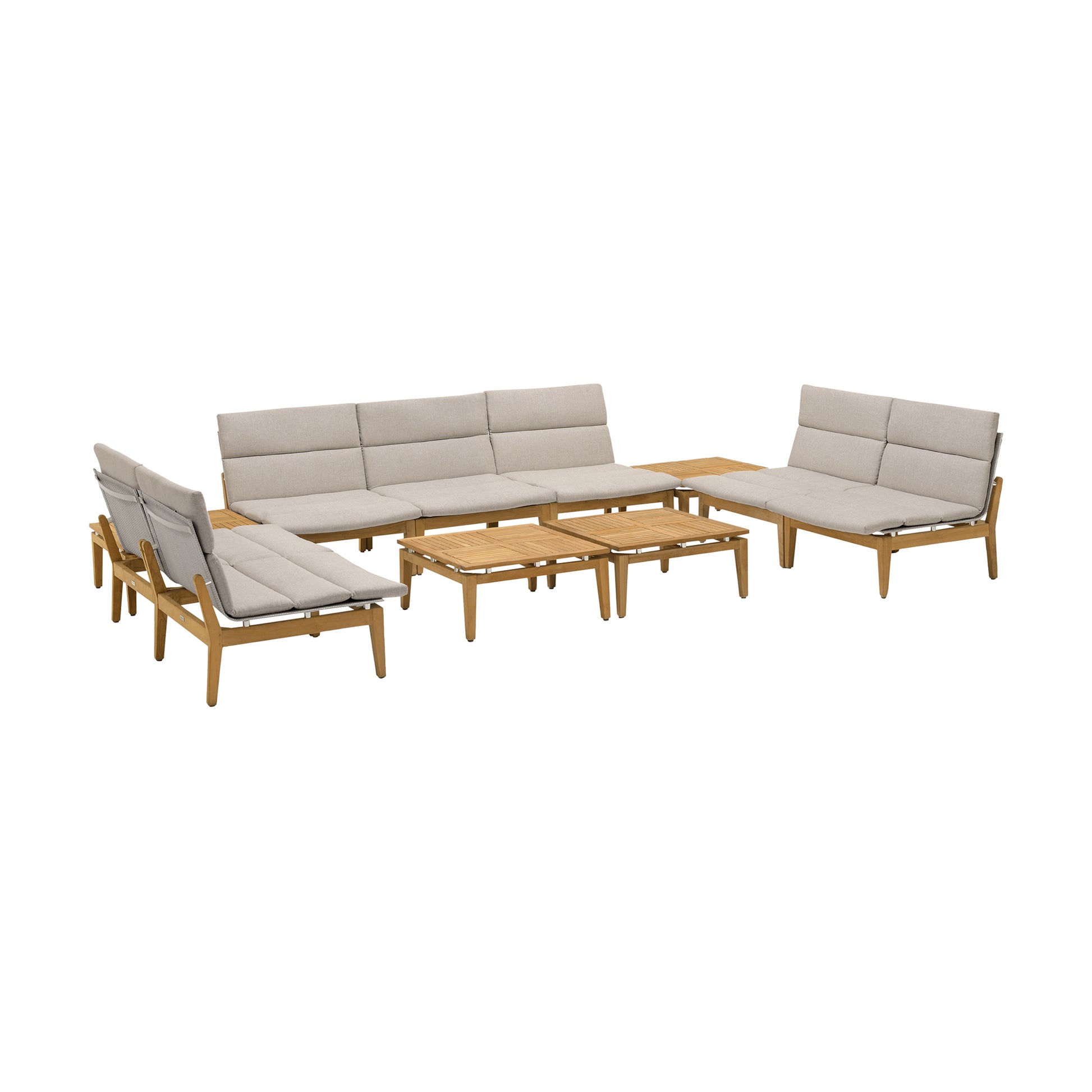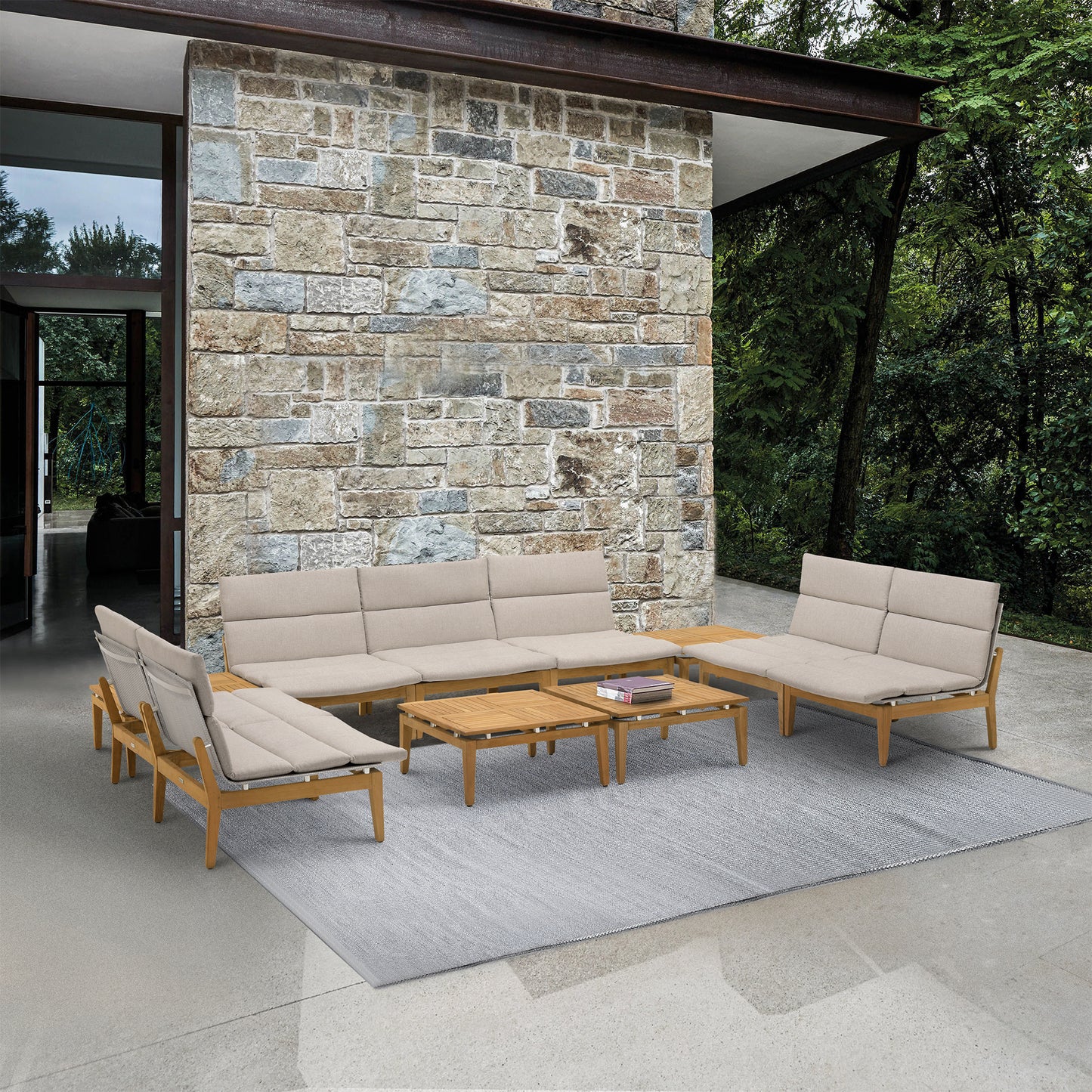 Arno Outdoor 11 Piece Teak Wood Seating Set in Beige Olefin
