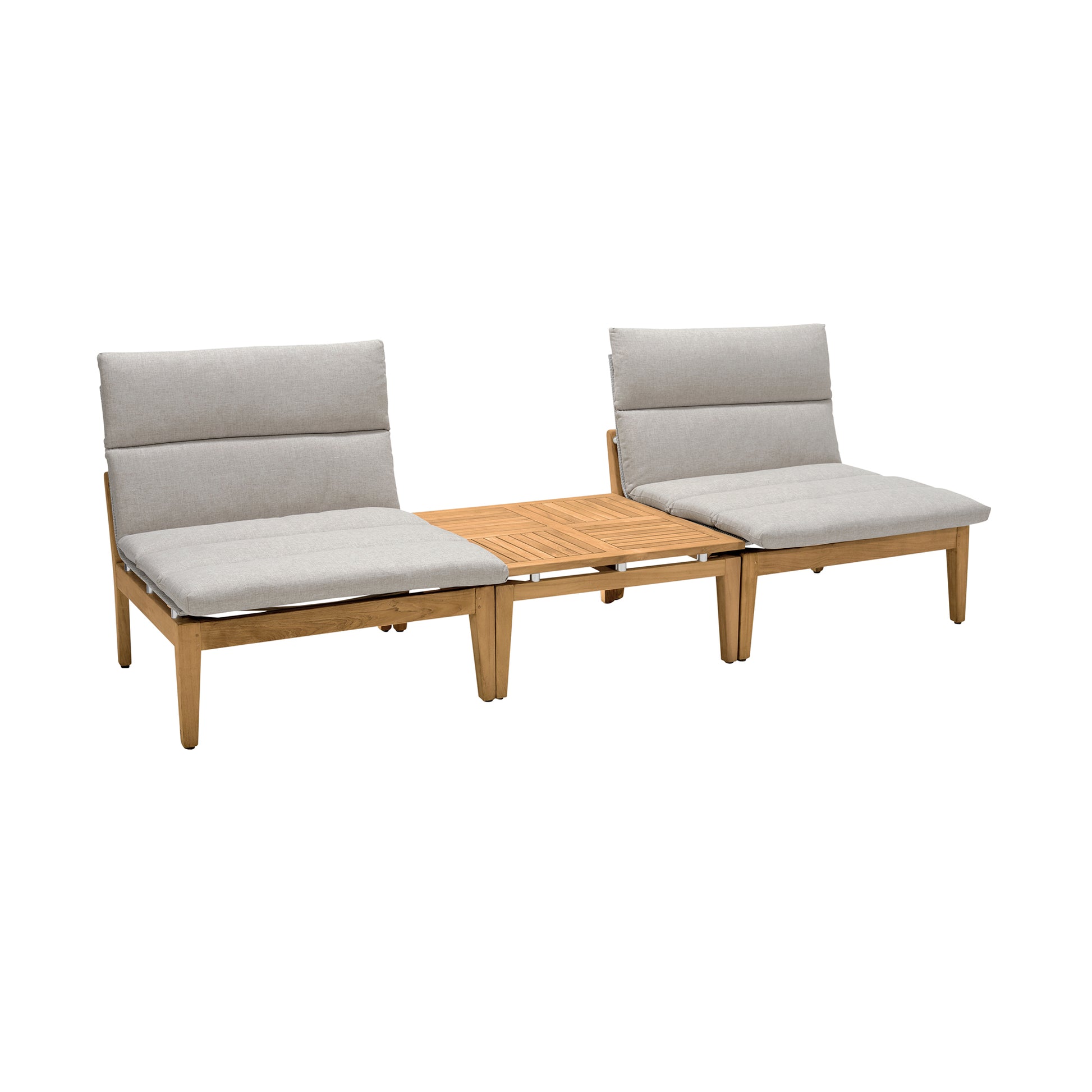 Arno Outdoor 3 Piece Teak Wood Seating Set in Beige Olefin