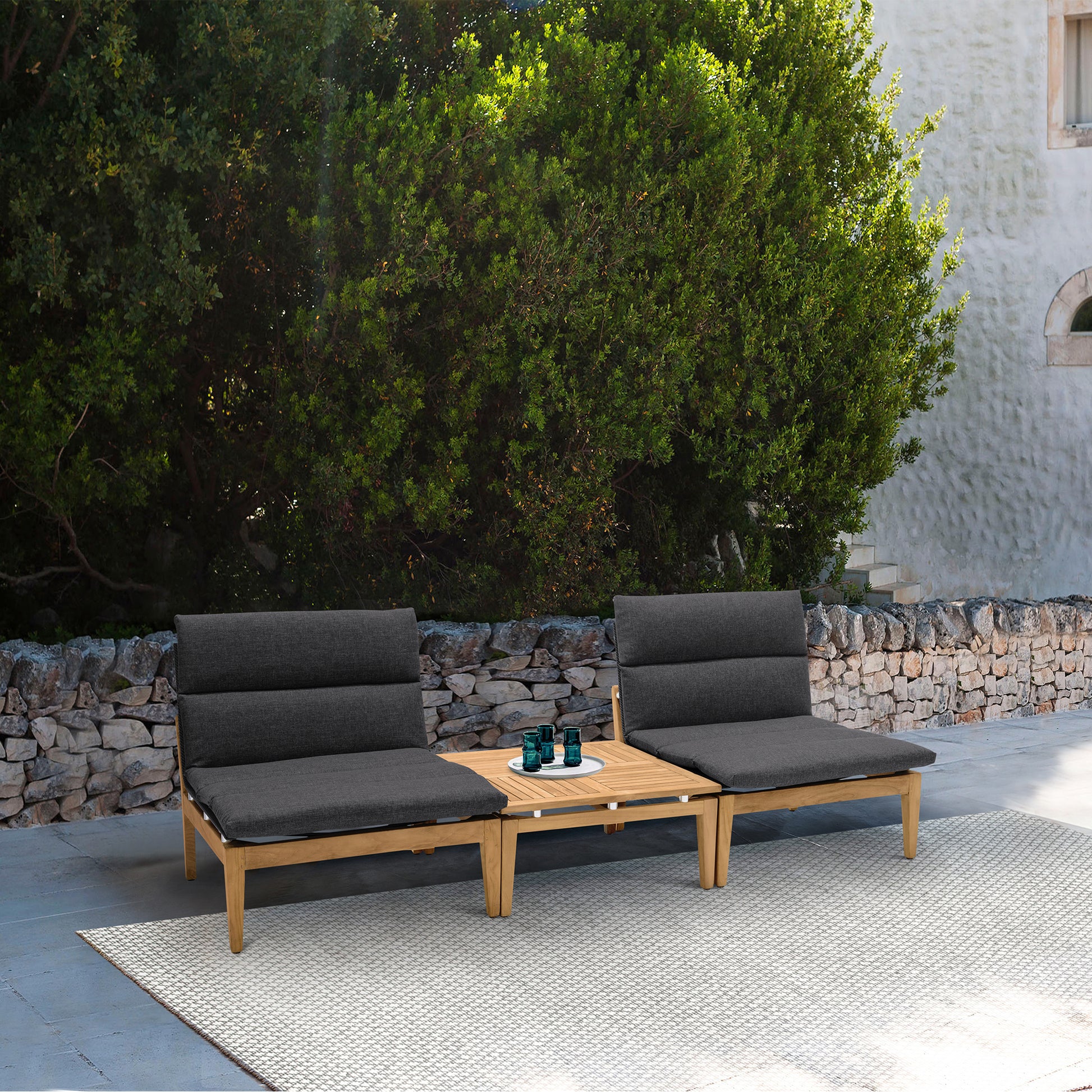 Arno Outdoor 3 Piece Teak Wood Seating Set in Charcoal Olefin